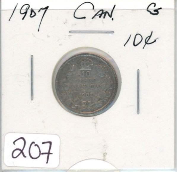 1907 Canadian silver ten cent coin