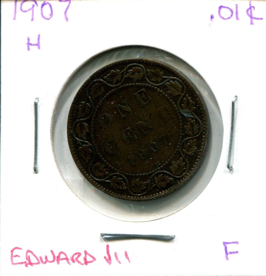 1907-H Edward VII Large One Cent Coin (F)