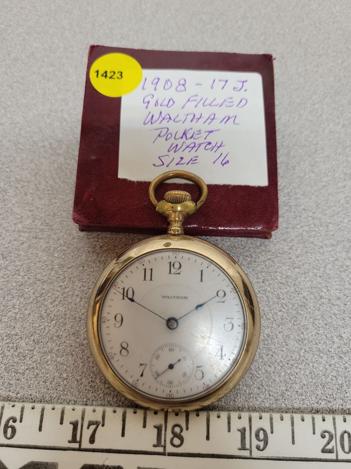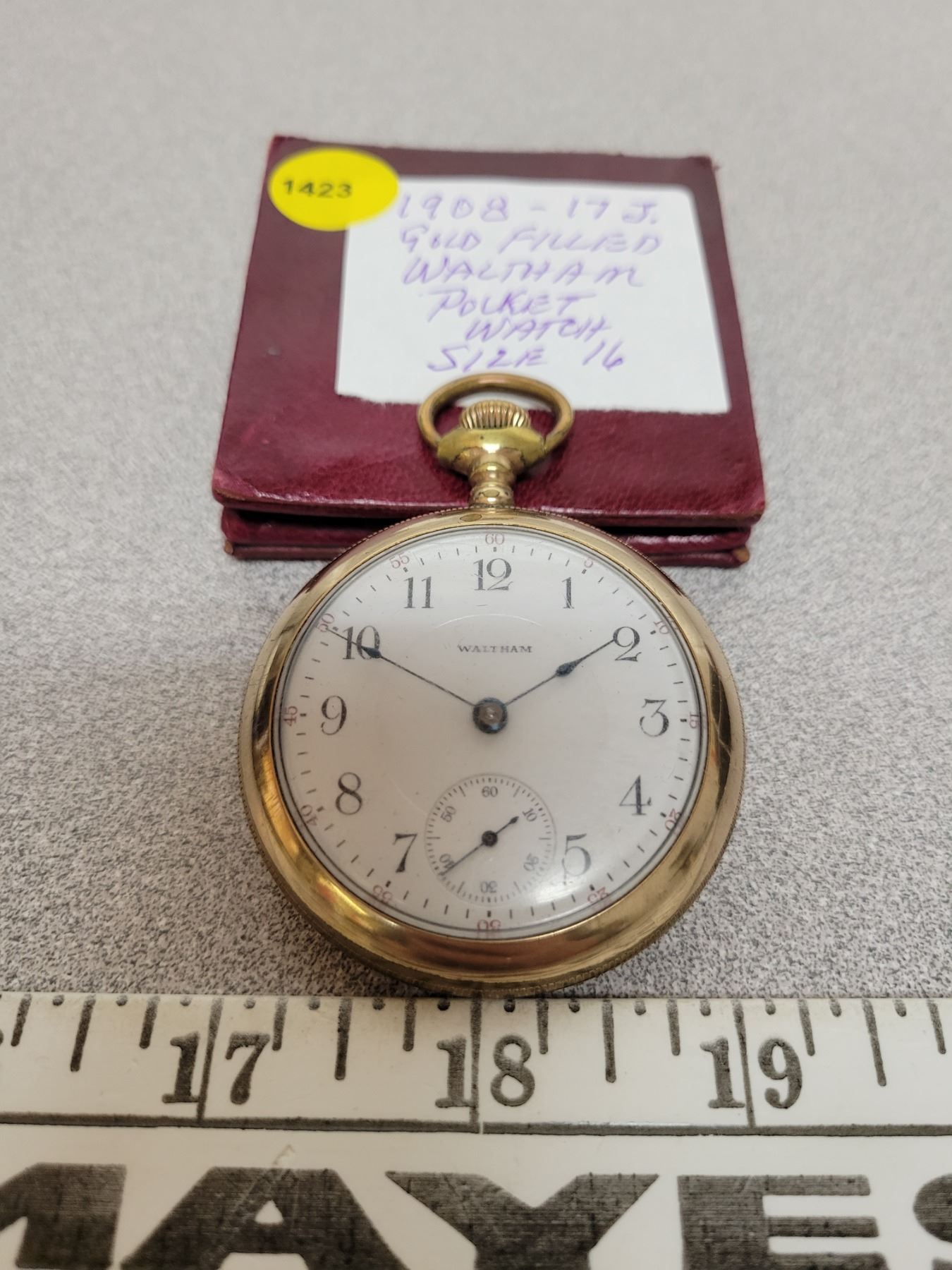 1908 17 Jewel Gold Filled Waltham pocket watch size 16