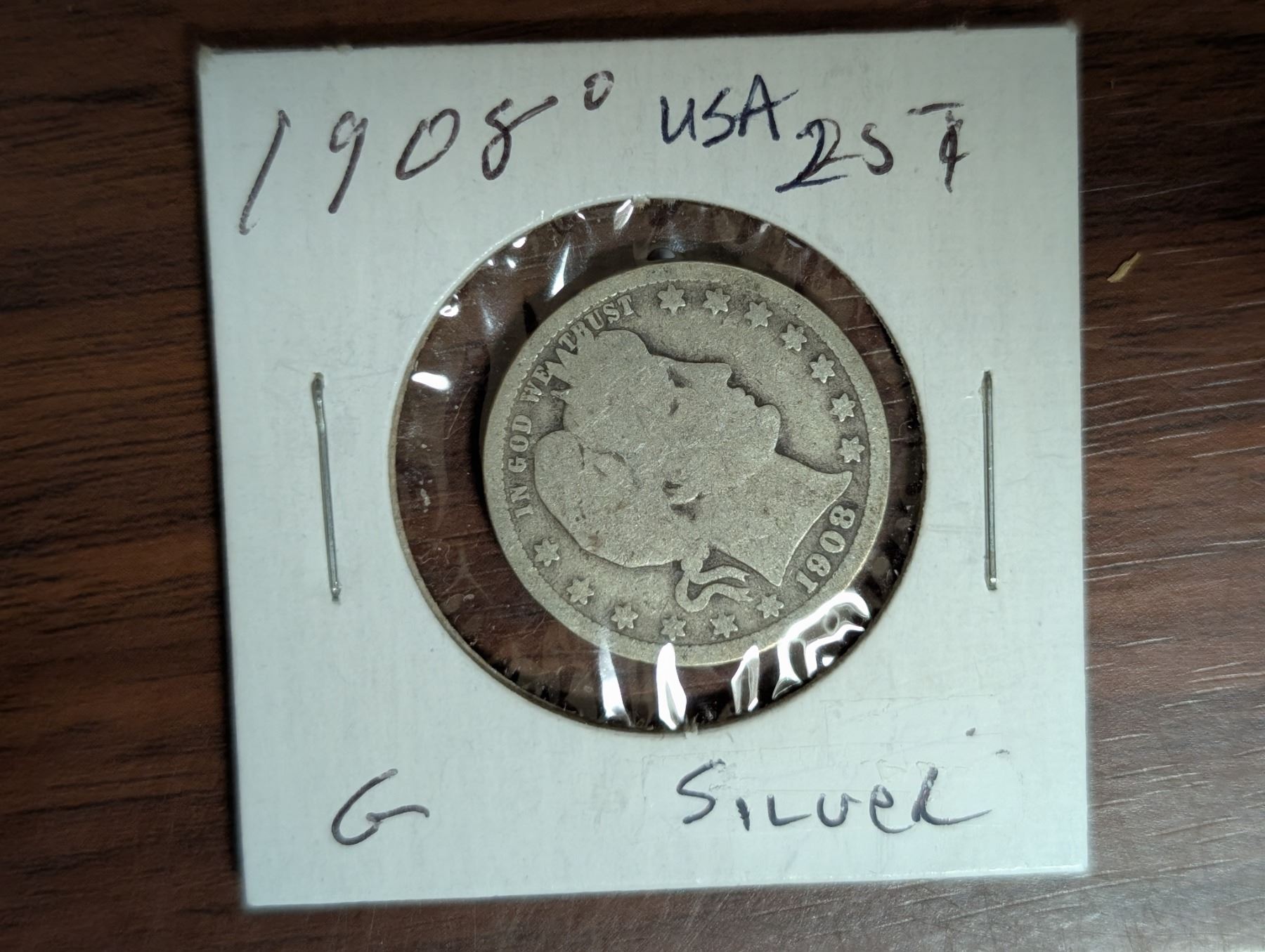 1908 American 25 Cent Coin (Silver)
