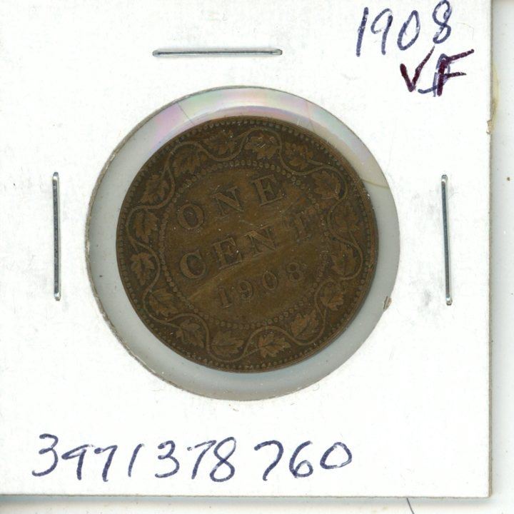 1908 Canadian Large Cent. The first Large Cent minted in Ottawa. VF-20.