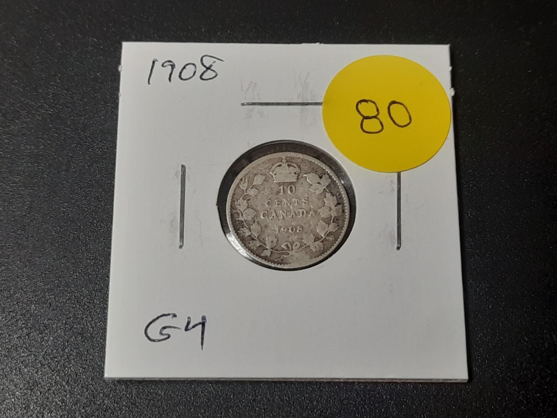 1908 Canadian Silver 10 Cents. G4.