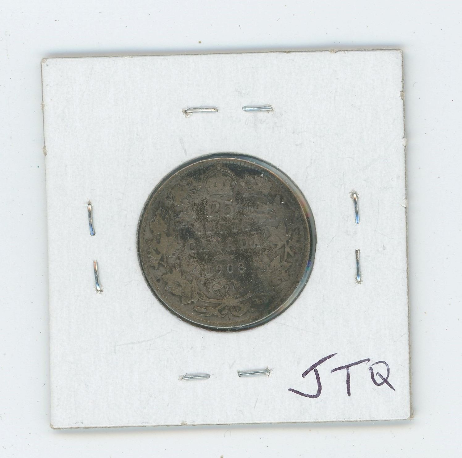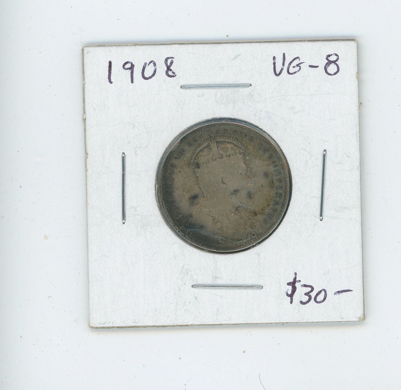 1908 Edward VII Silver 25 Cents. Key Date. Mintage of 495,016. VG-8.