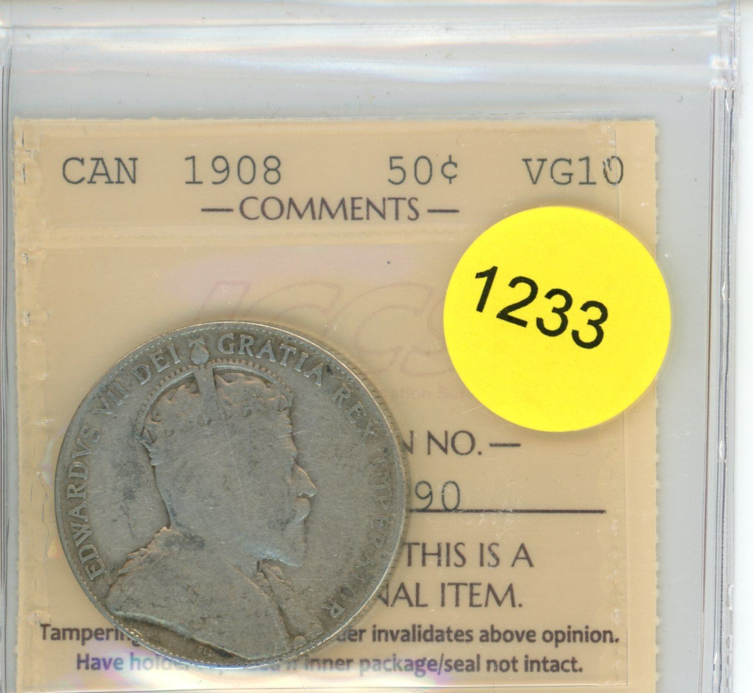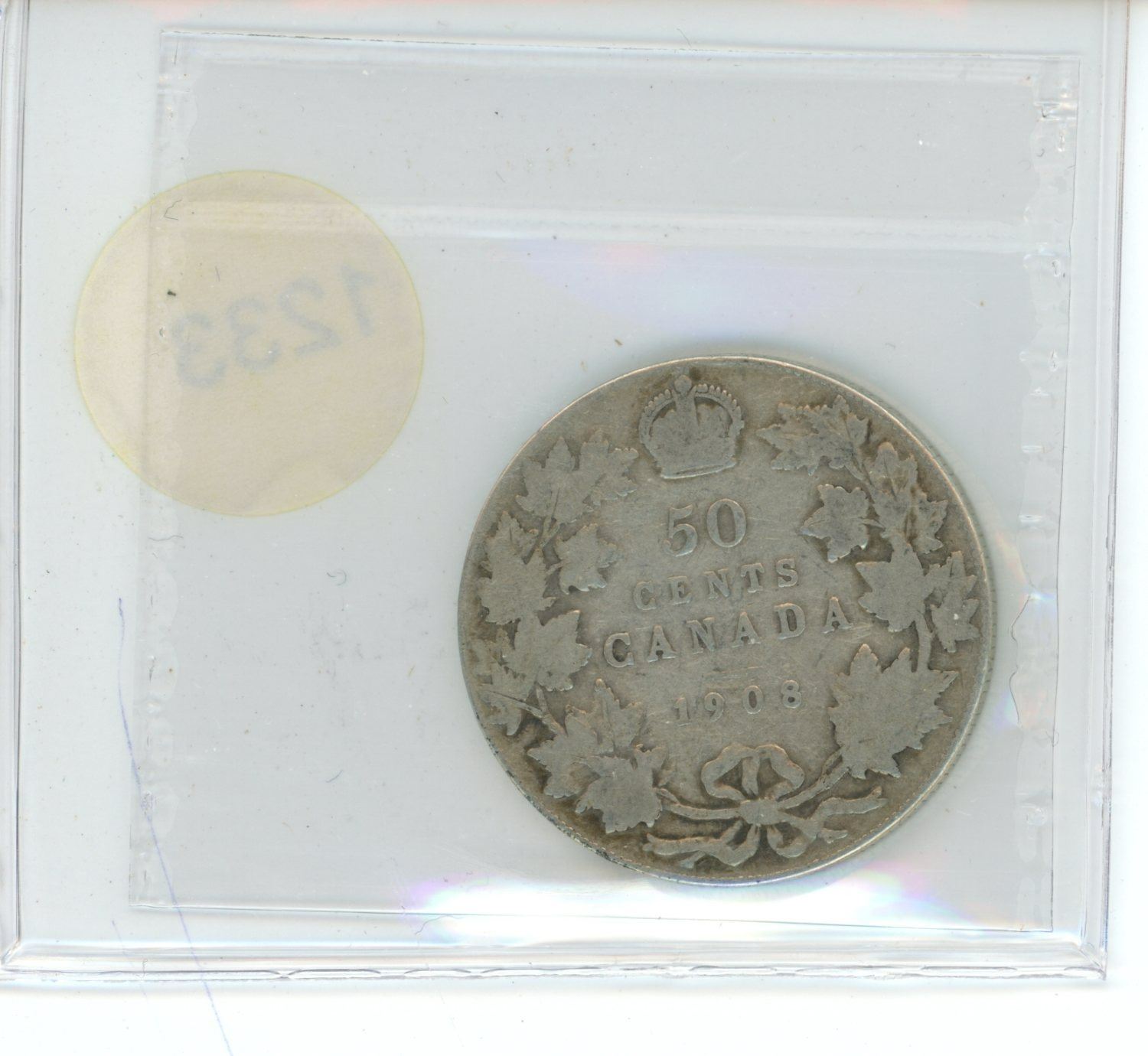 1908 VG10 ICCS Graded Canadian Fifty Cent Coin