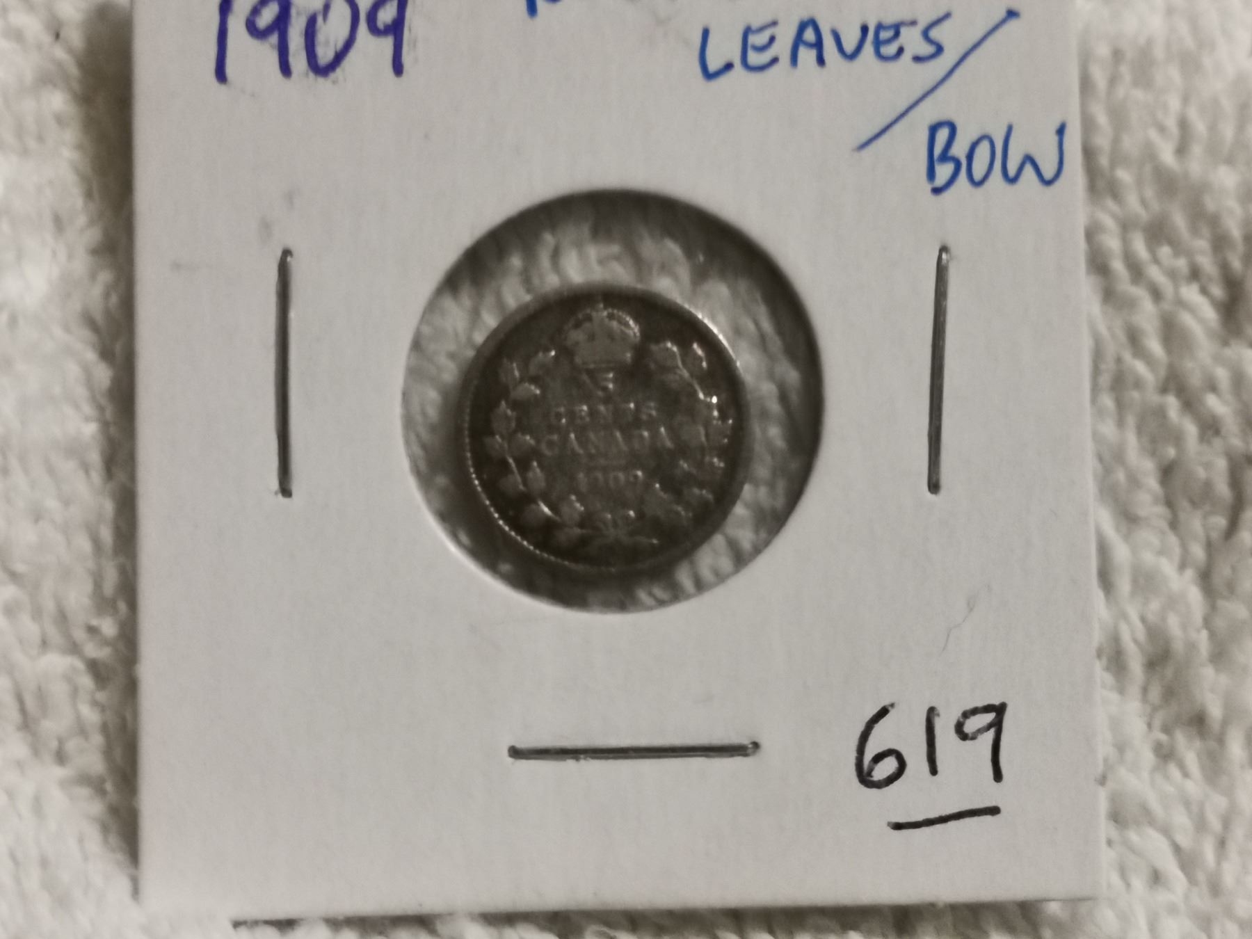 1909 CANADA SILVER 5 CENT ROUND LEAVES/BOW