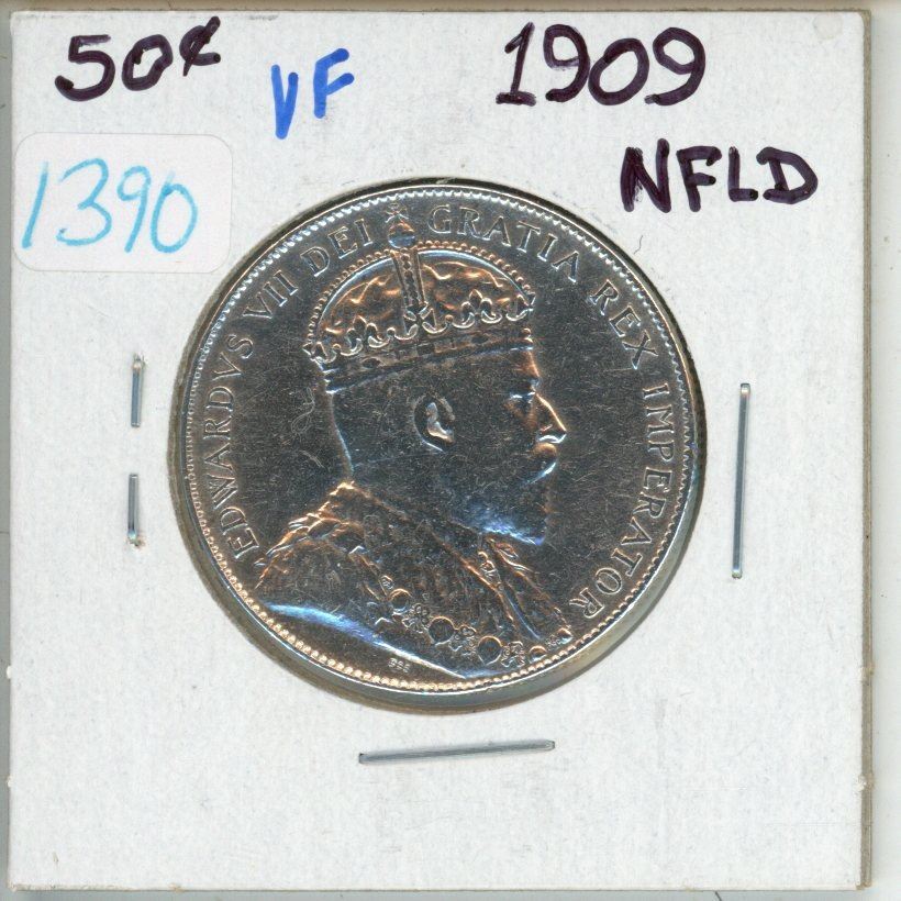1909 NFLD Canadian silver 50 cent coin