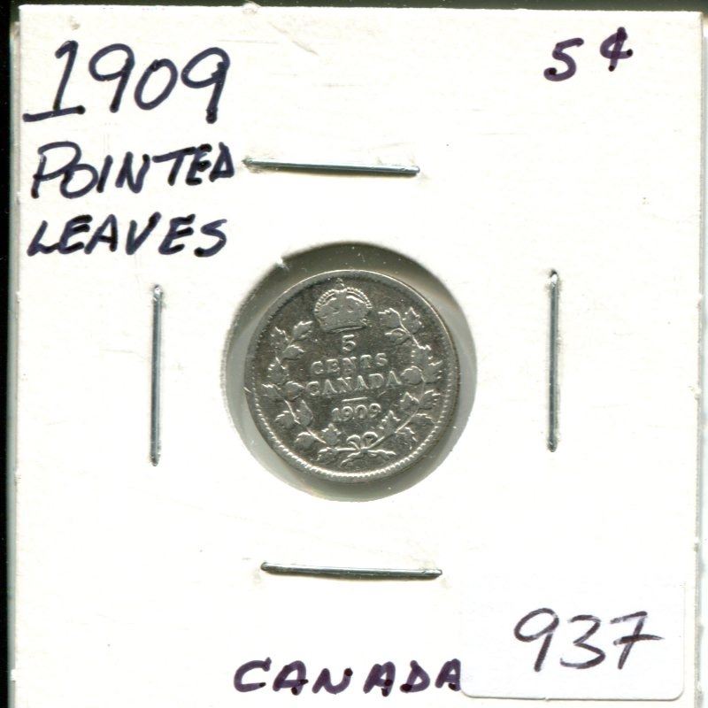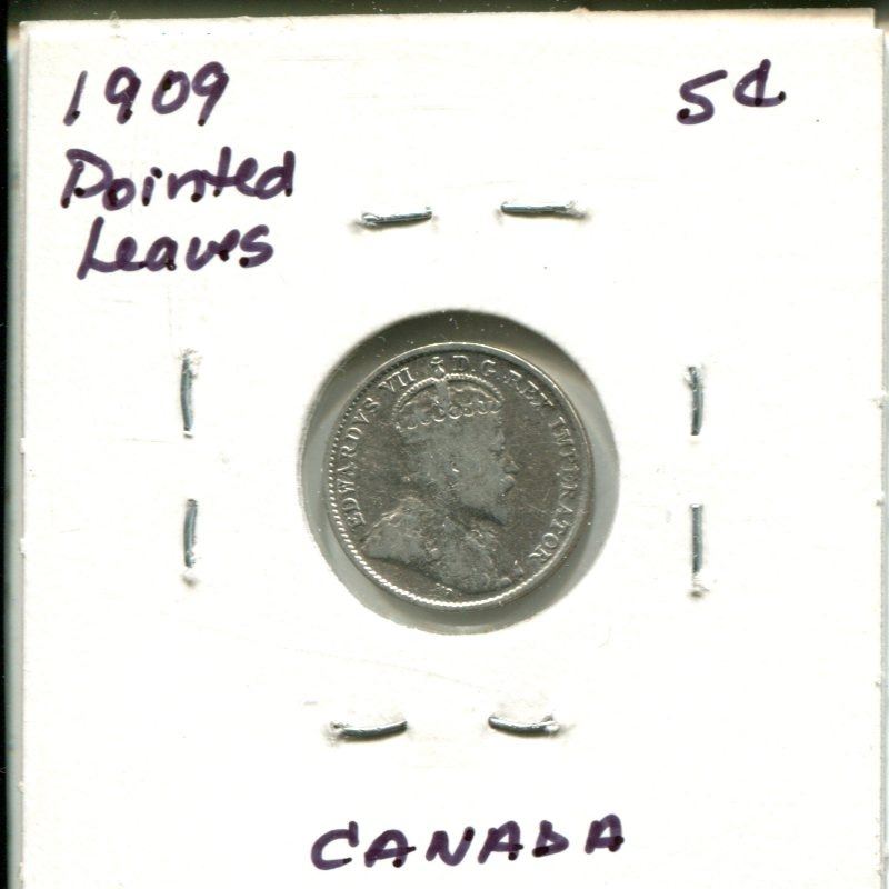 1909 Pointed Leaves Canada Silver 5¢