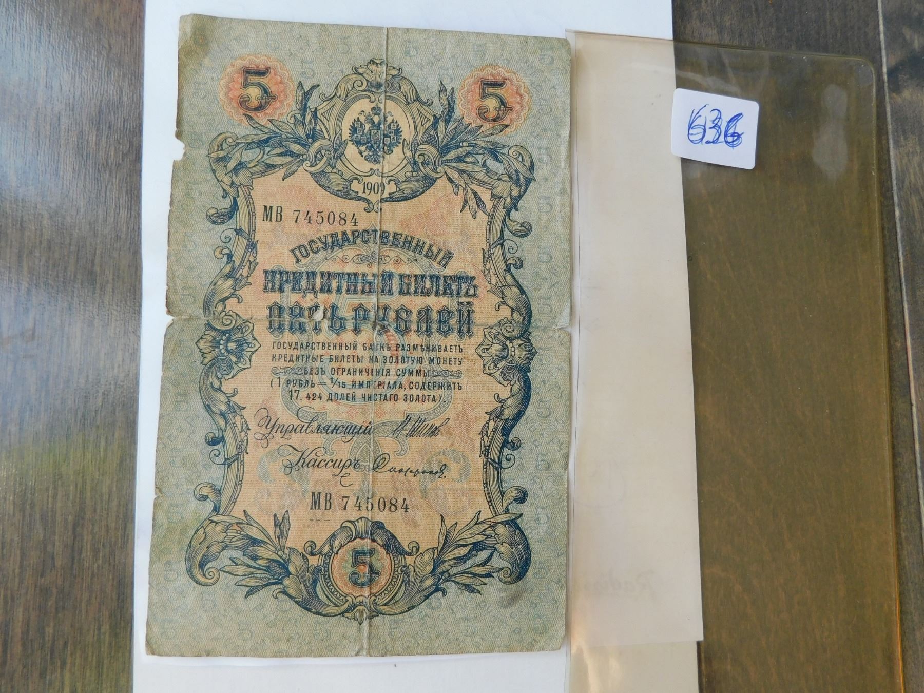 1909 RUSSIAN 5 RUBLES BILL