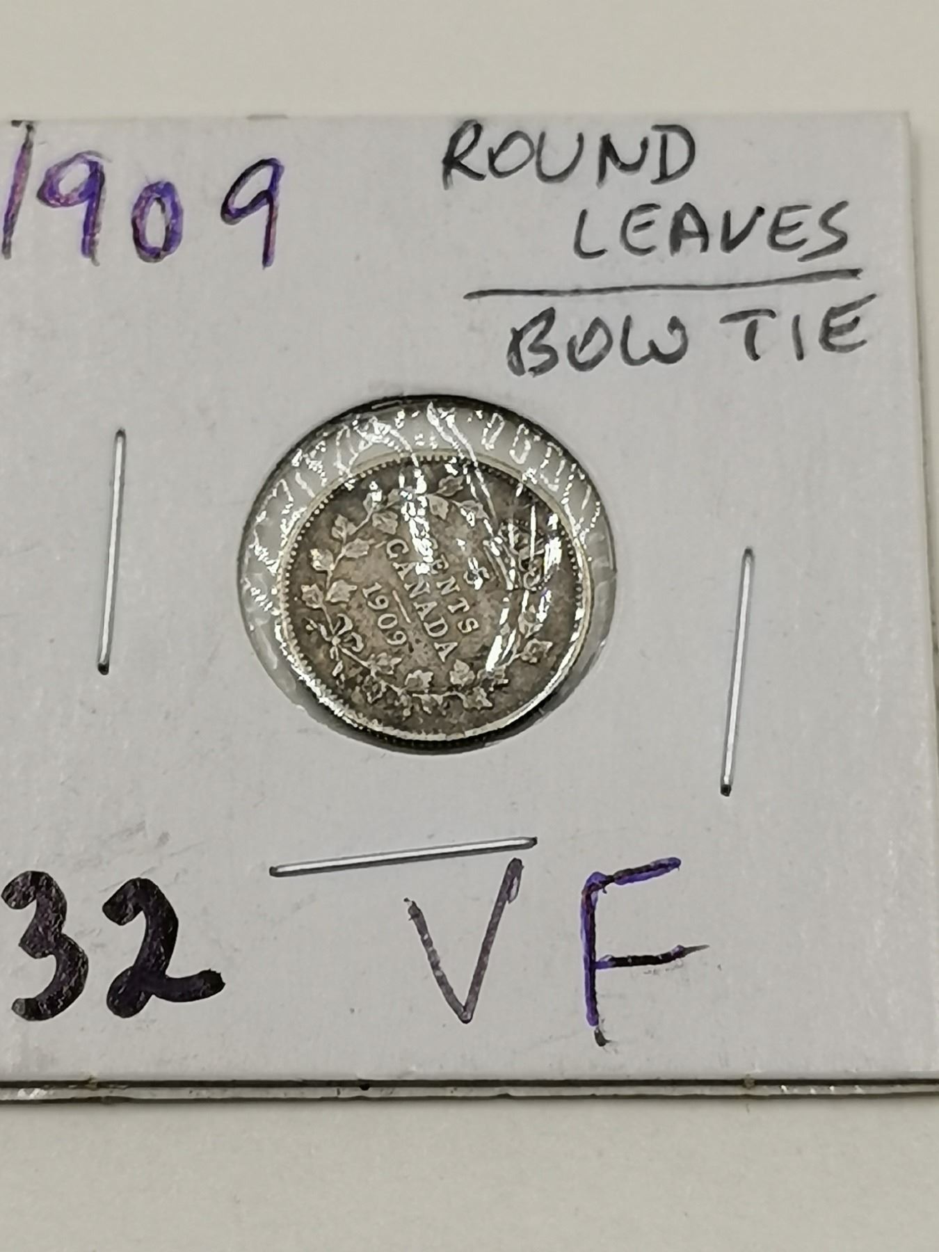 1909 Round Leaves/ Bowtie Silver 5 Cent Coin, VF