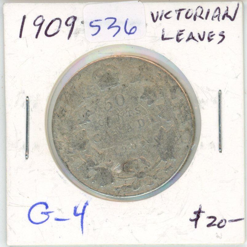 1909 Victorian Leaves Canadian Silver 50 Cents. G-4. Key Date. Mintage of 203,118.