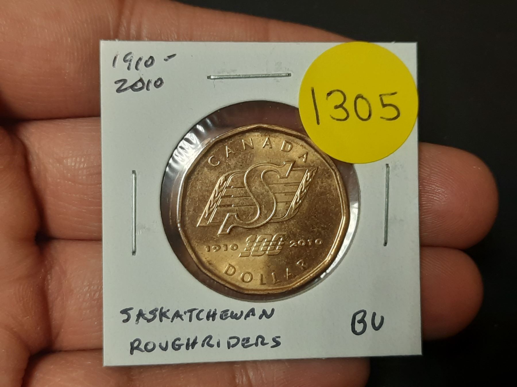 1910 – 2010 Saskatchewan Roughriders Loonie. BU.