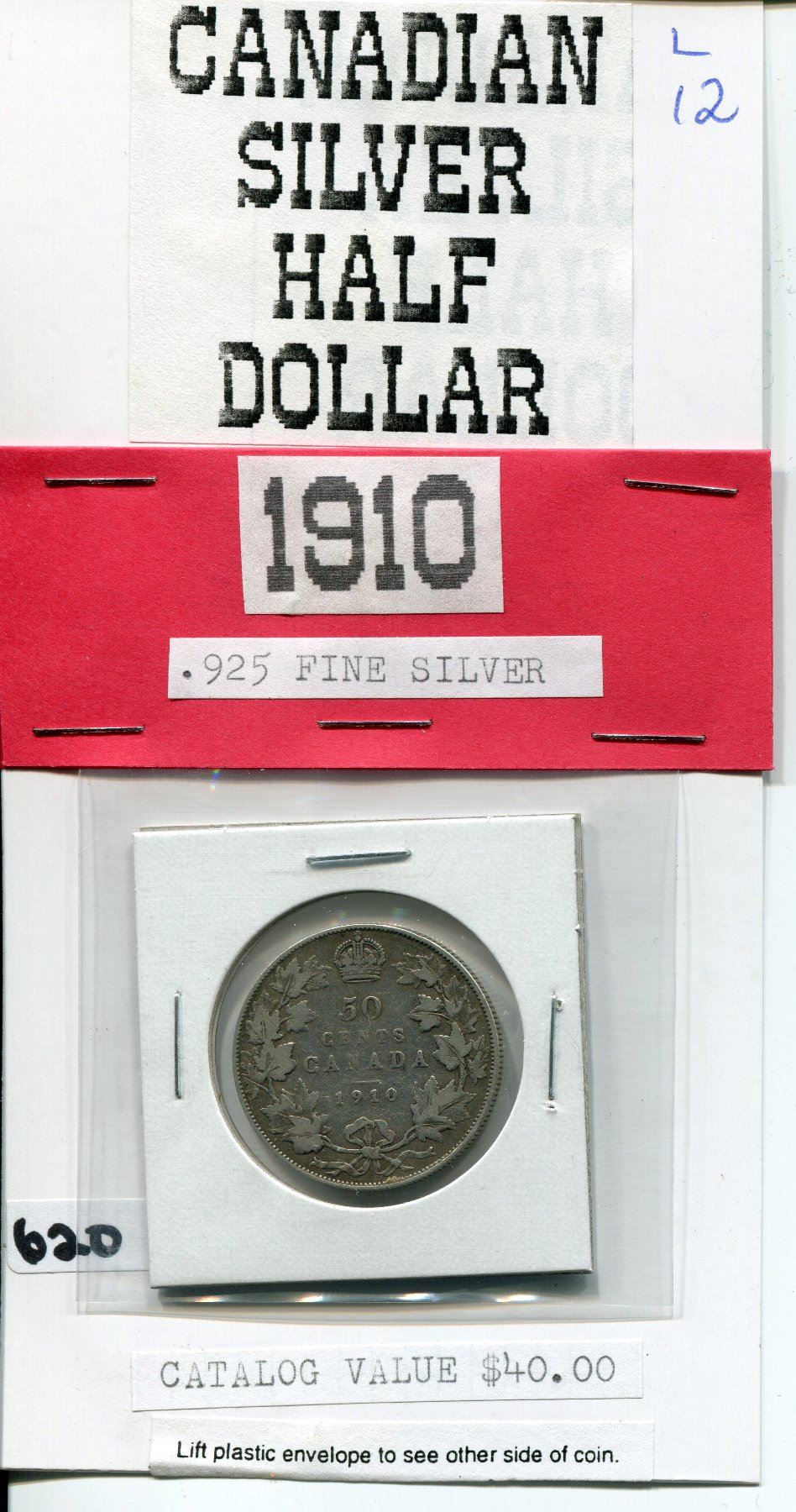 1910 CNDN .925 FINE SILVER 50 CENT PC