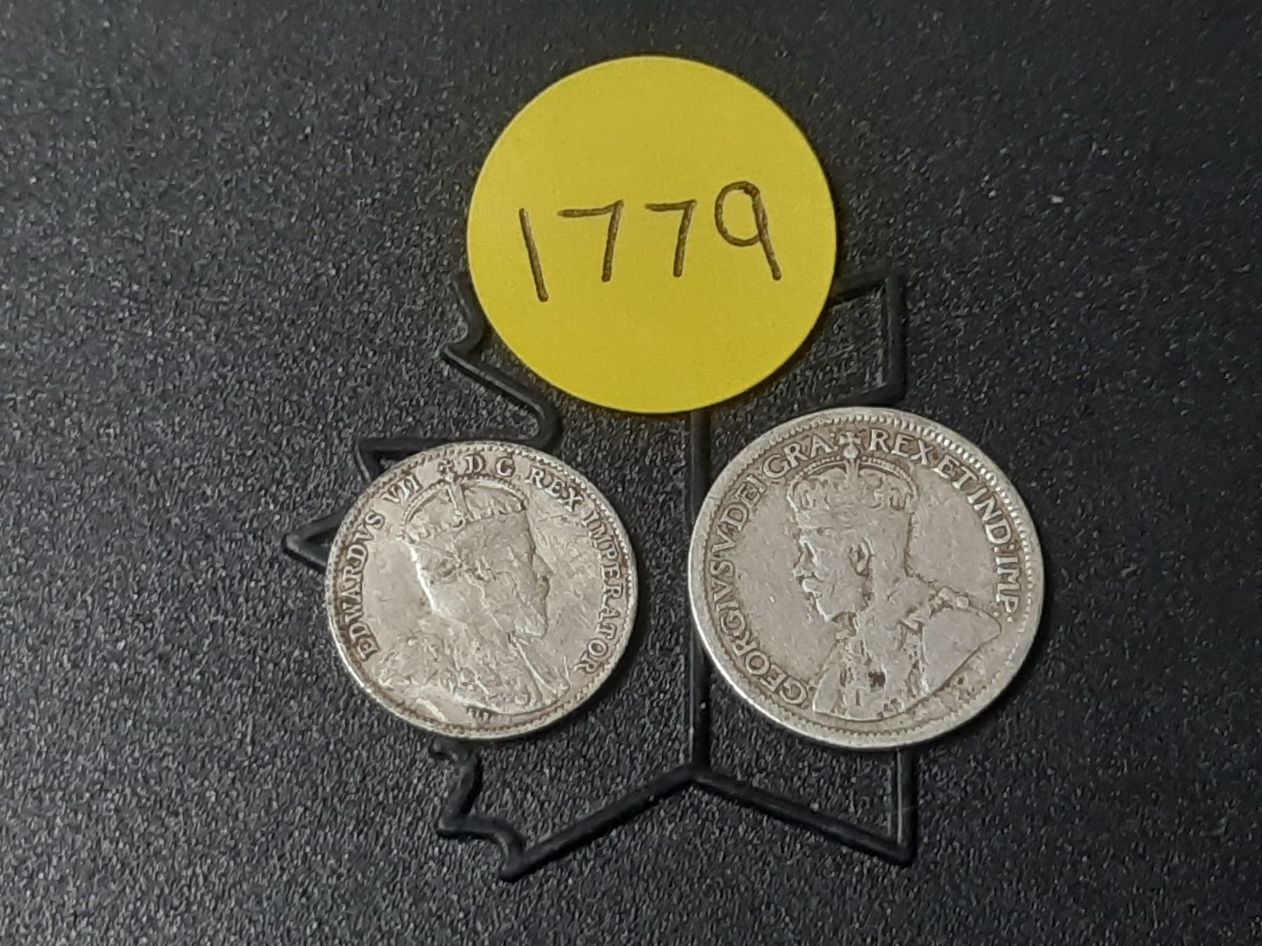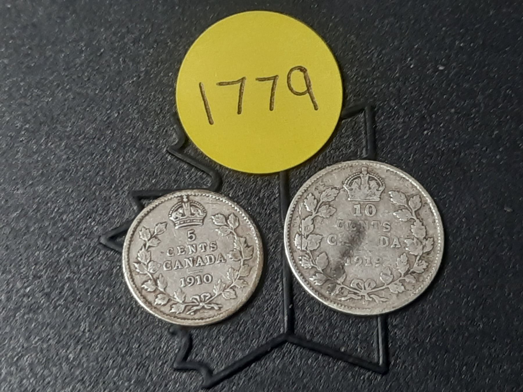 1910 Canada Silver 5 Cents and 1919 Canada Silver 10 Cents.