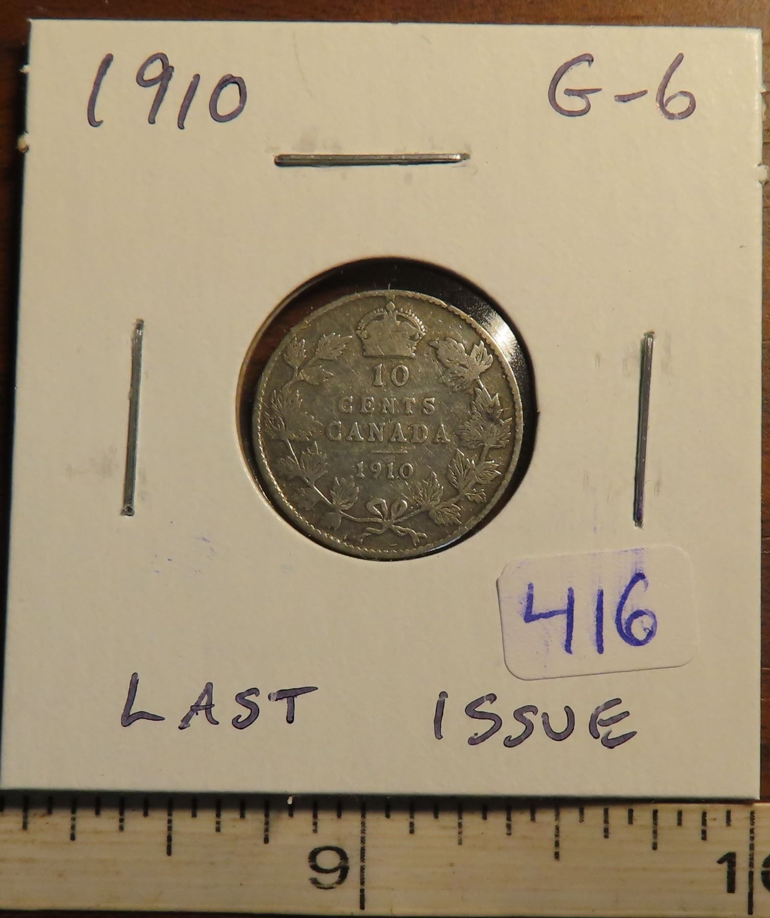 1910 Canadian Silver 10 Cents. The last issue for King Edward VII. G-6.