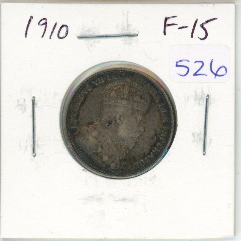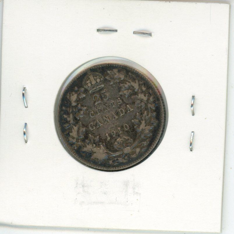 1910 Canadian Silver 25 Cents. Last 25 cents issued for King Edward VII. F-15.