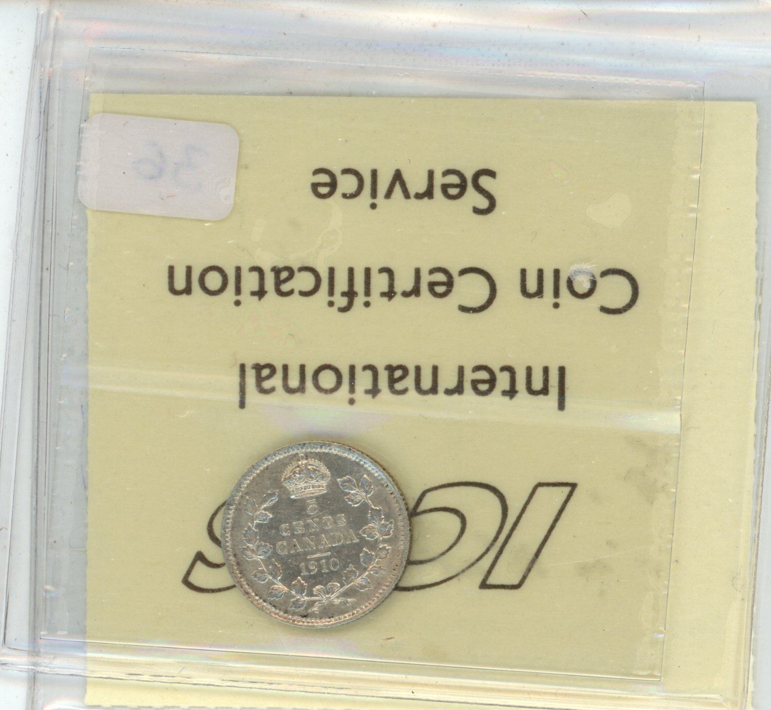 1910 Canadian Silver 5 Cents. Round Leaves variety. ICCS certified & graded EF-40, Mark.