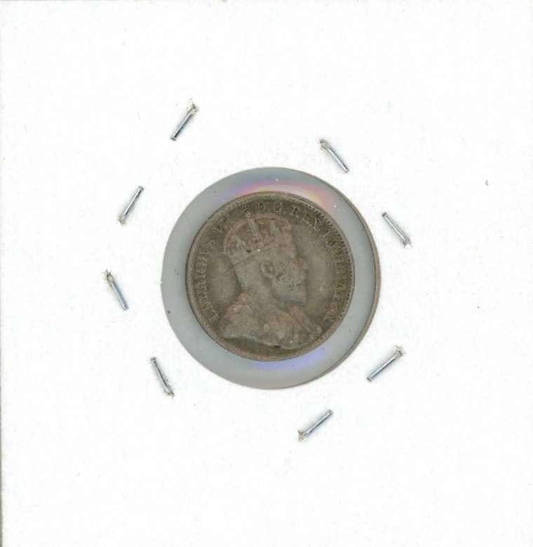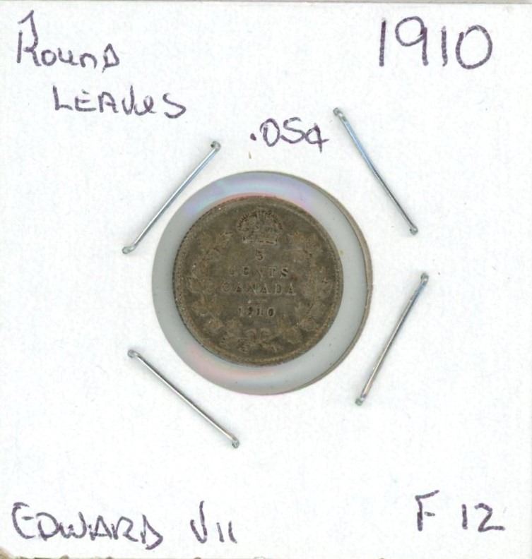 1910 Edward VII Five Cent Coin (F-12) (Round Leaves)