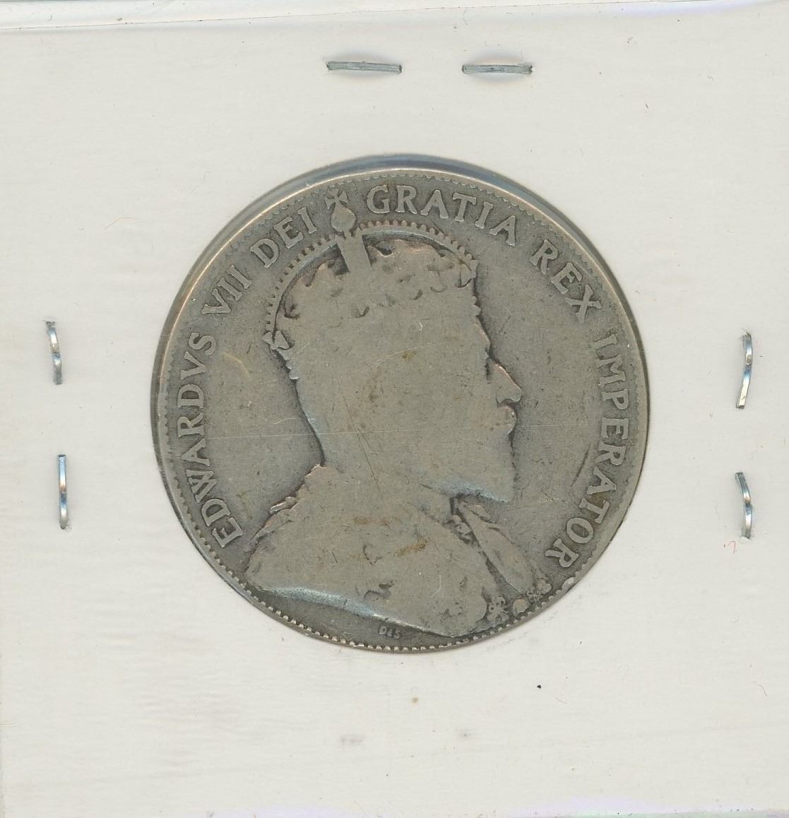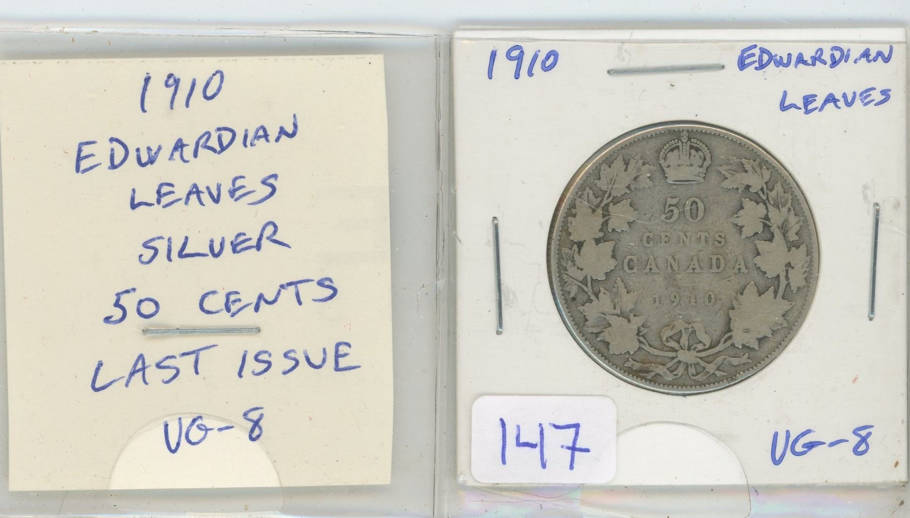 1910 Edwardian Leaves Silver 50 Cents. Last year of issue of Edward VII. VG-8.