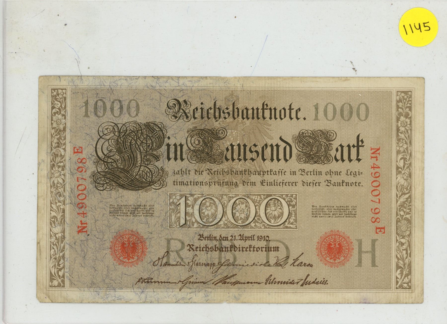 1910 Imperial Germany One Thousand Mark Reichsbanknote