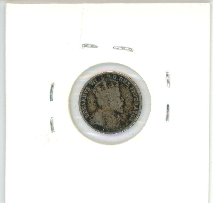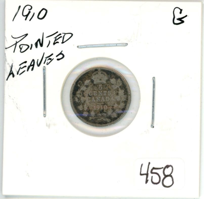 1910 Pointed Leaves Canadian Silver Five Cent Piece
