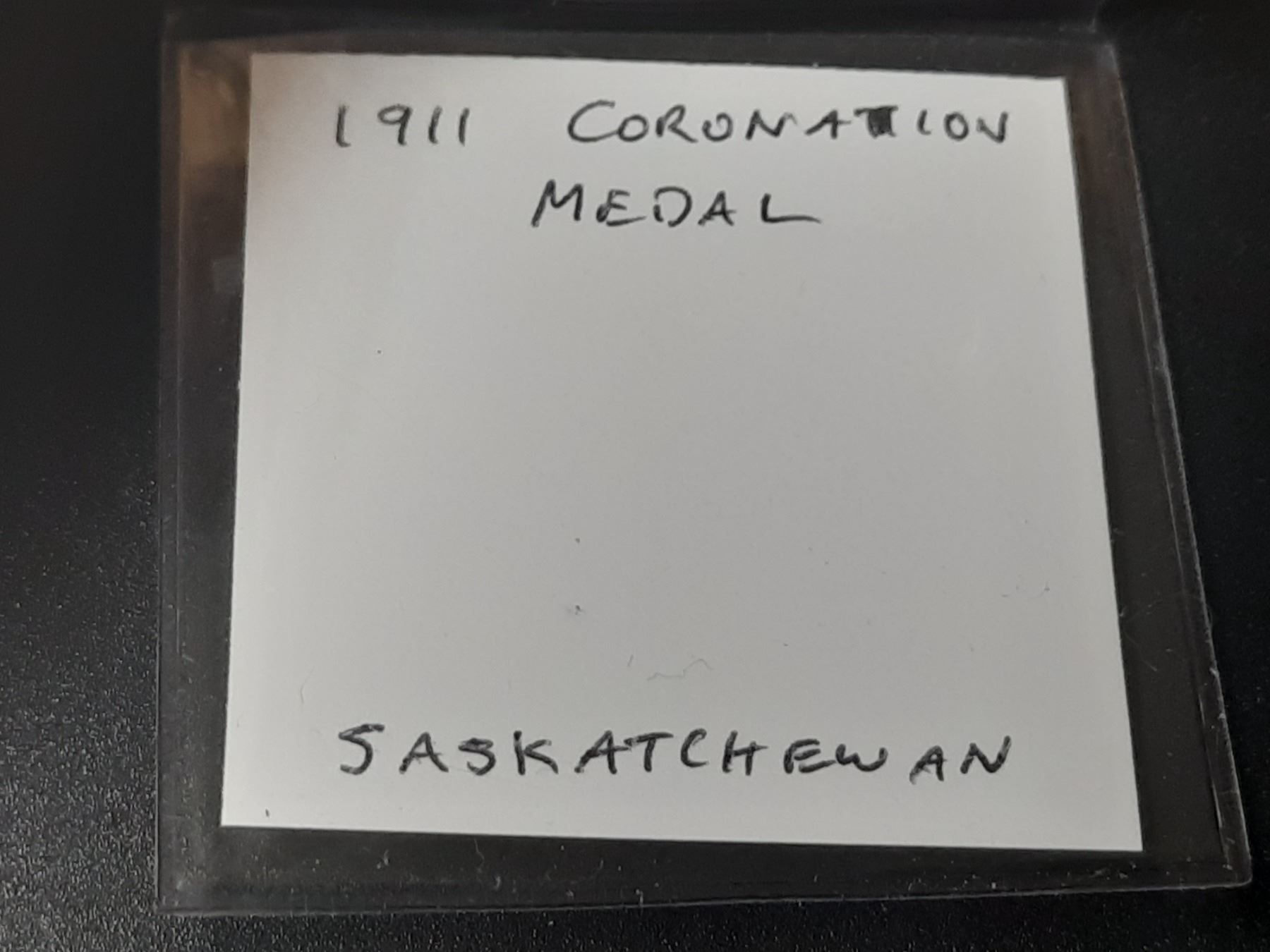1911 Coronation Medal for King George V. Saskatchewan reverse.