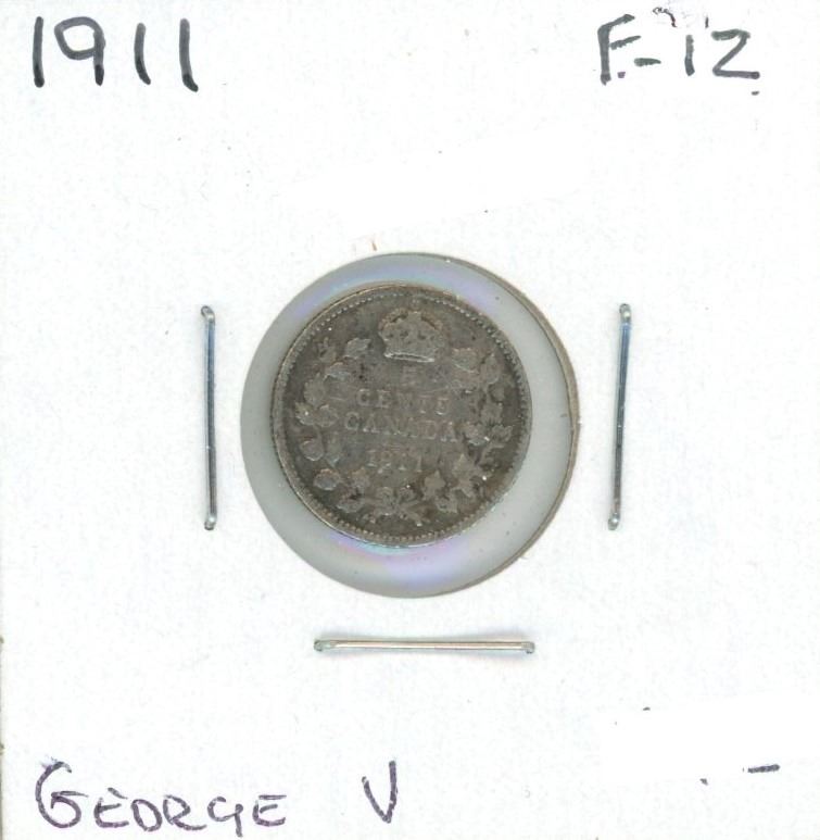 1911 George V Five Cent Coin (F-12)