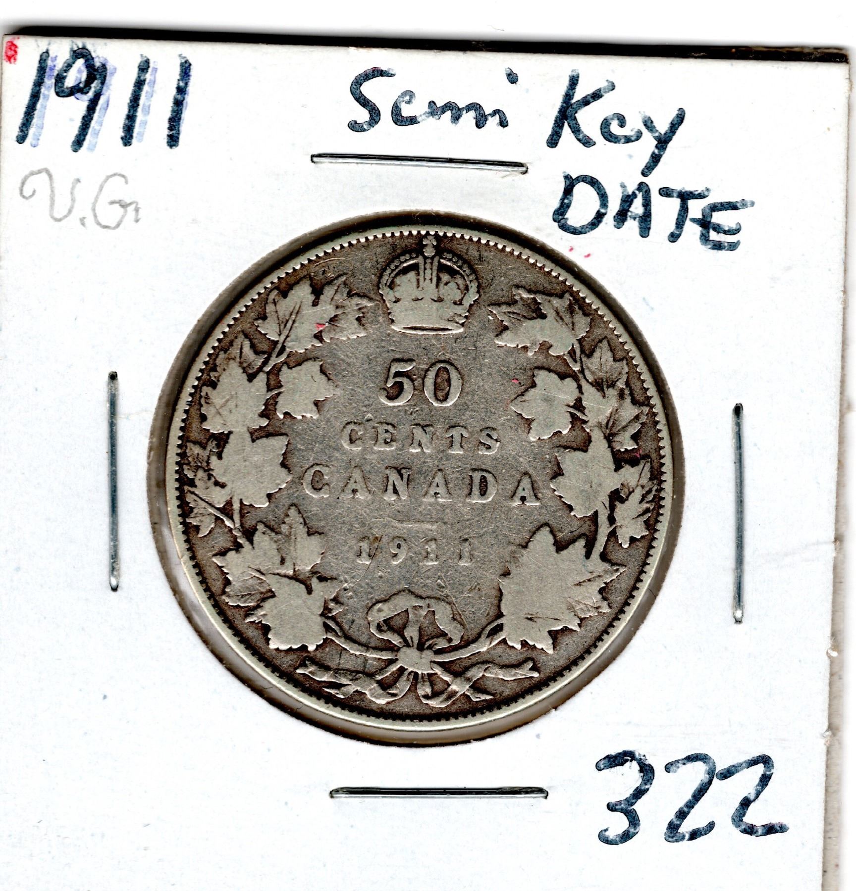 1911 SEMI KEY DATE 50 CENT PIECE
