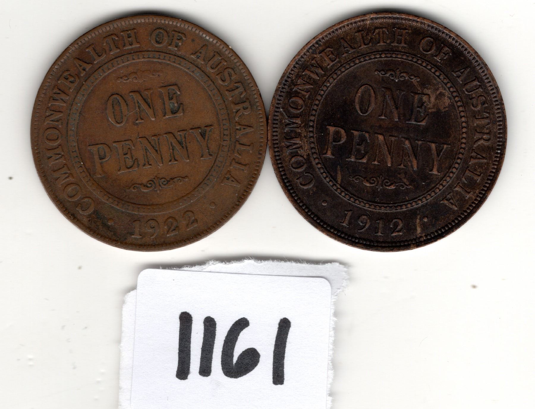 1912 AND 1922 AUSTRALIAN ONE PENNIES
