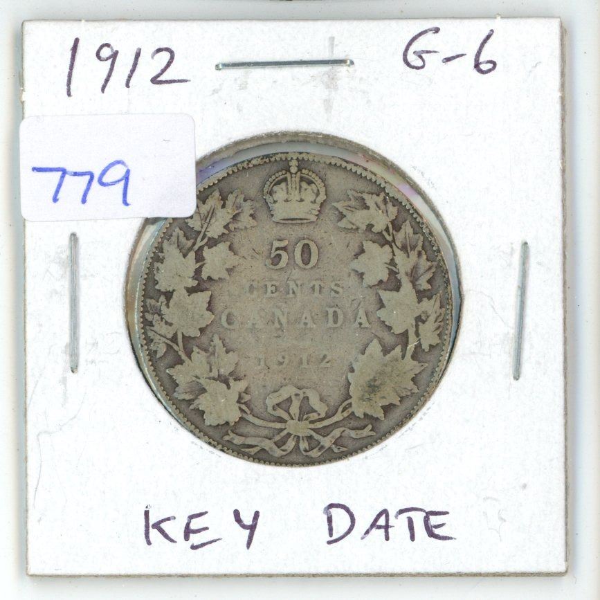 1912 Canadian Silver 50 cents. G-6. Key Date. Mintage of 285,867.