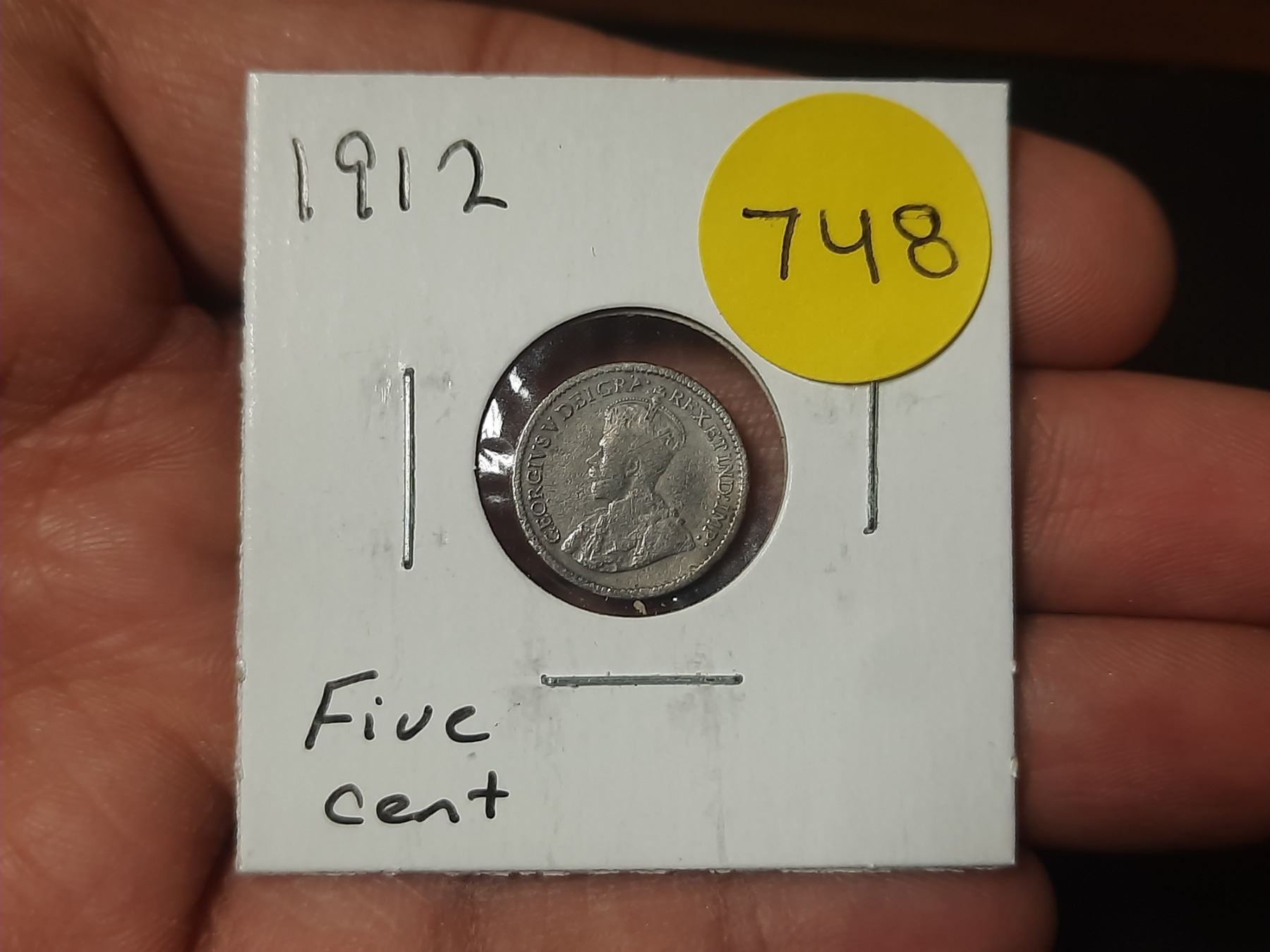 1912 Canadian Silver Small Five Cents