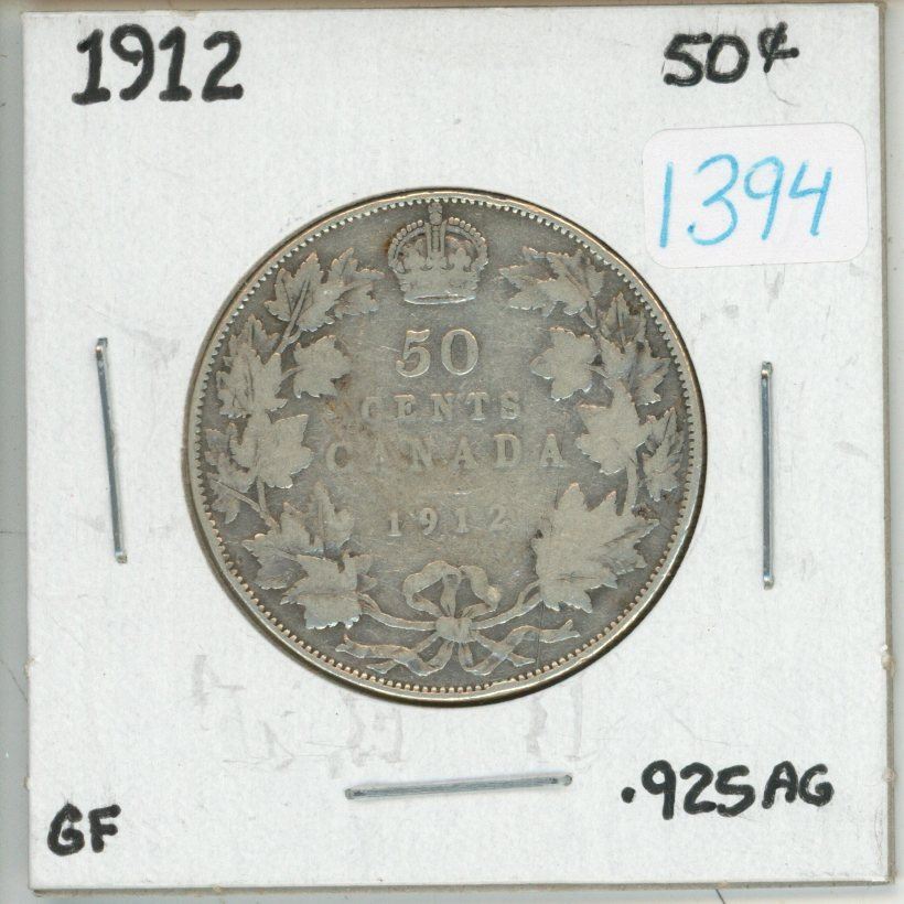 1912 Canadian silver 50 cent coin