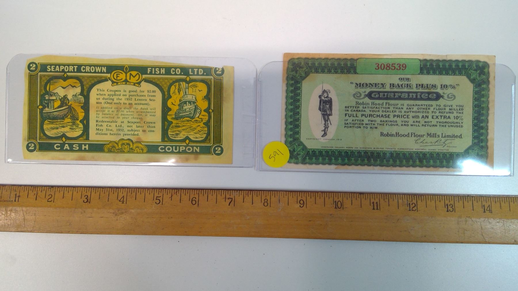1912 Robin Hood Flour Miles Ltd and Seaport Crown Fish Coupons