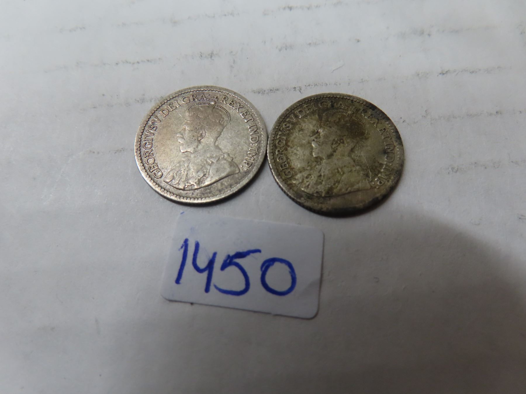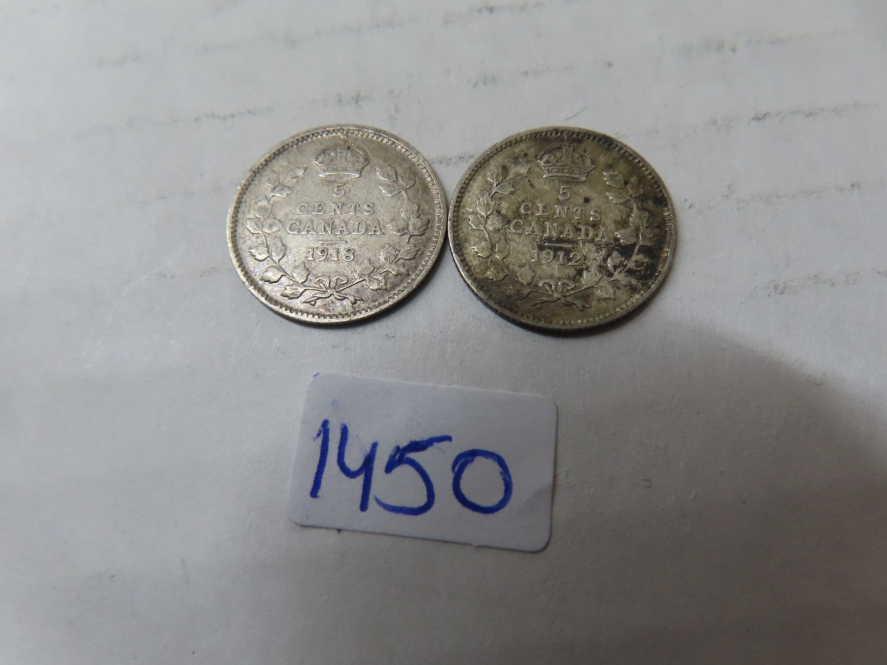 1912 and 1918 5 cent canadian silver coins