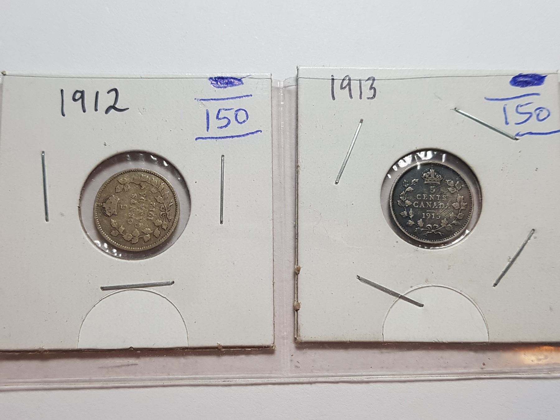 1913 AND 1912 CANADA 5 CENT SILVER COINS