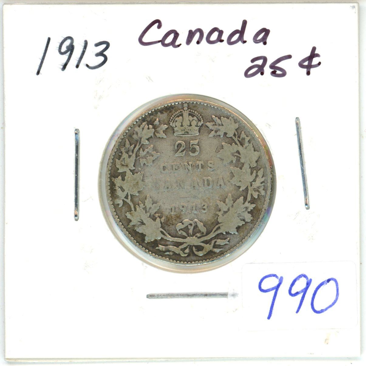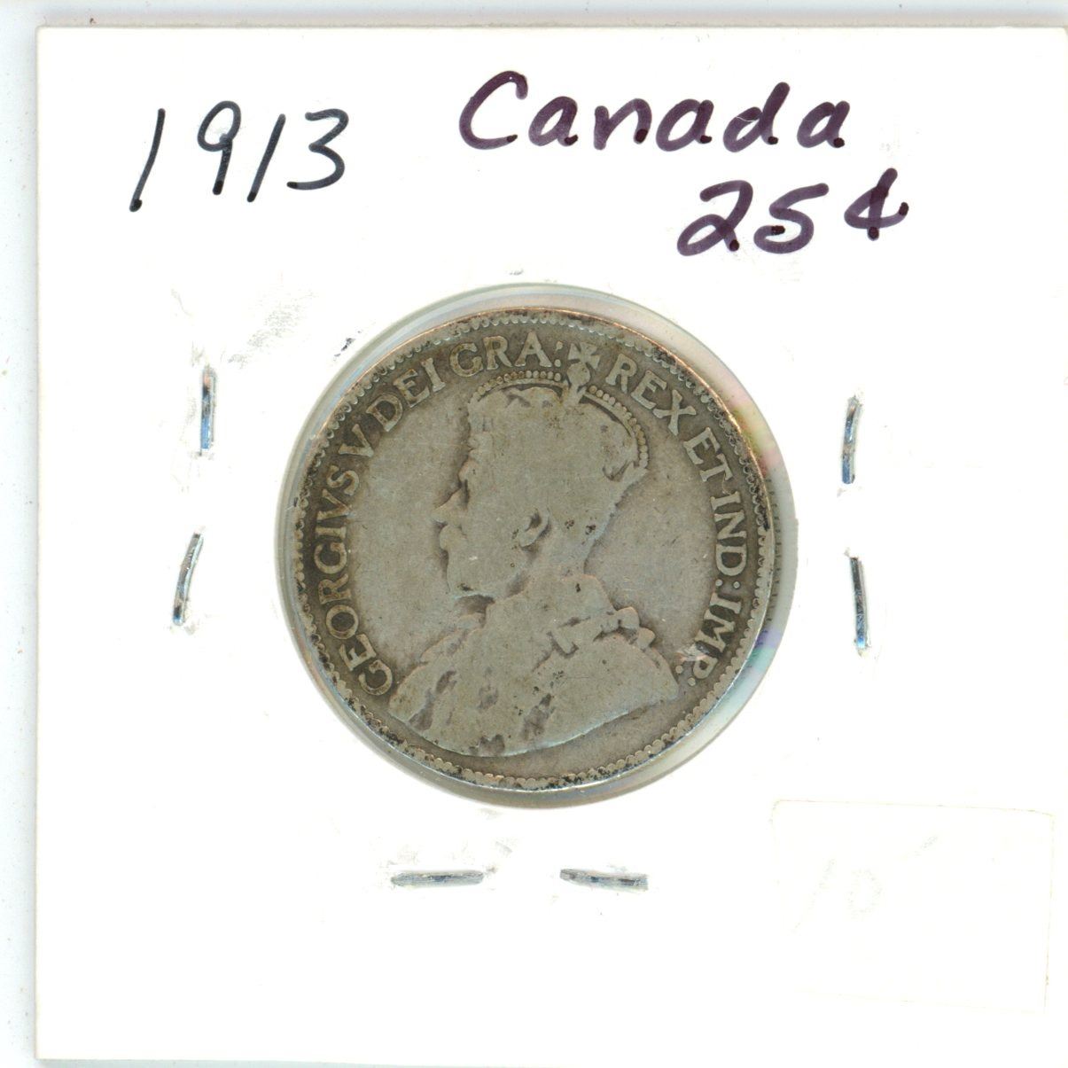 1913 Canadian 25 cent silver coin