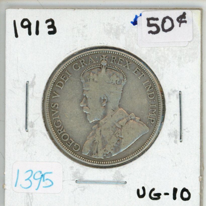 1913 Canadian silver 50 cent coin
