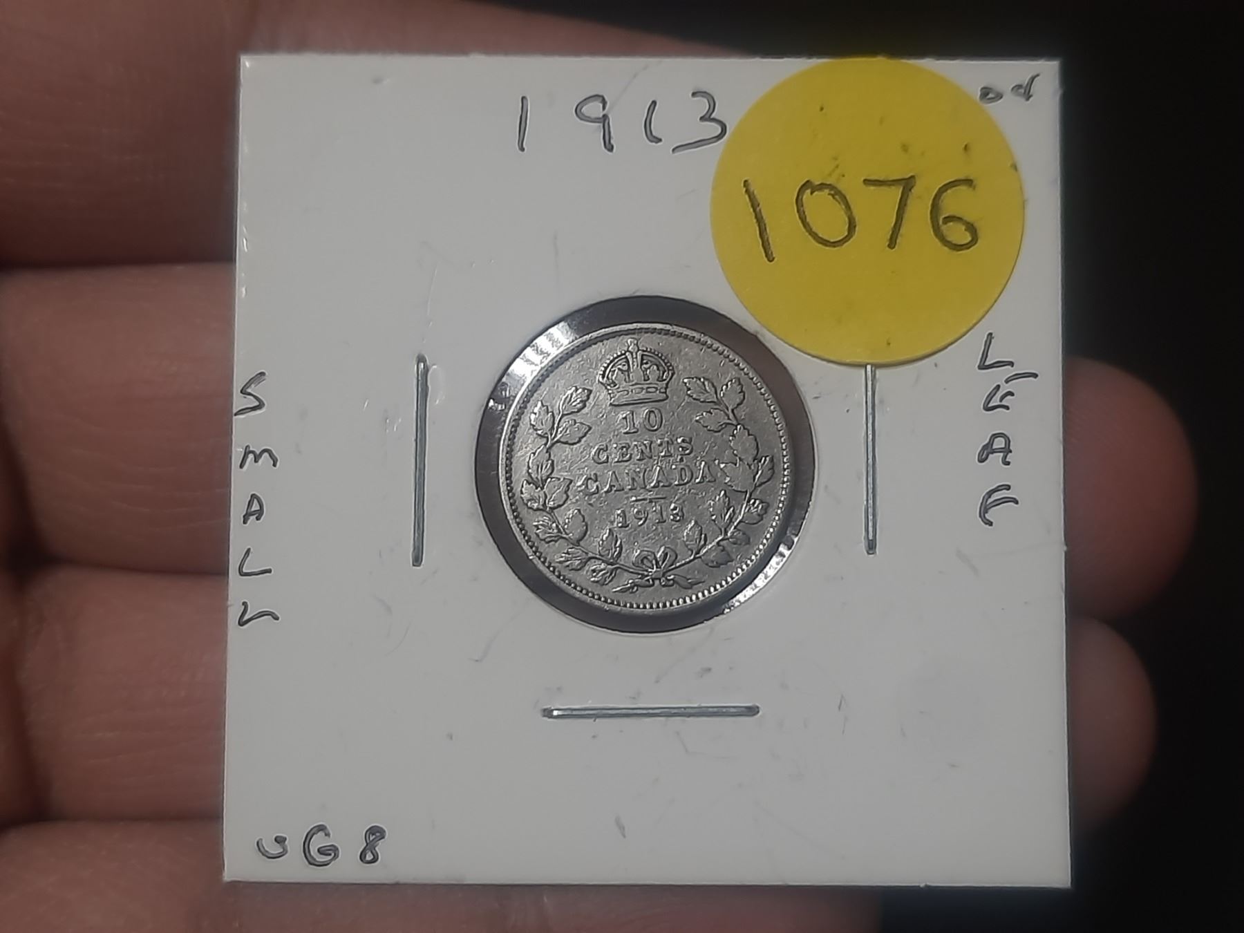 1913-SL DIME VG8 Canadian Dime, Small Leafs