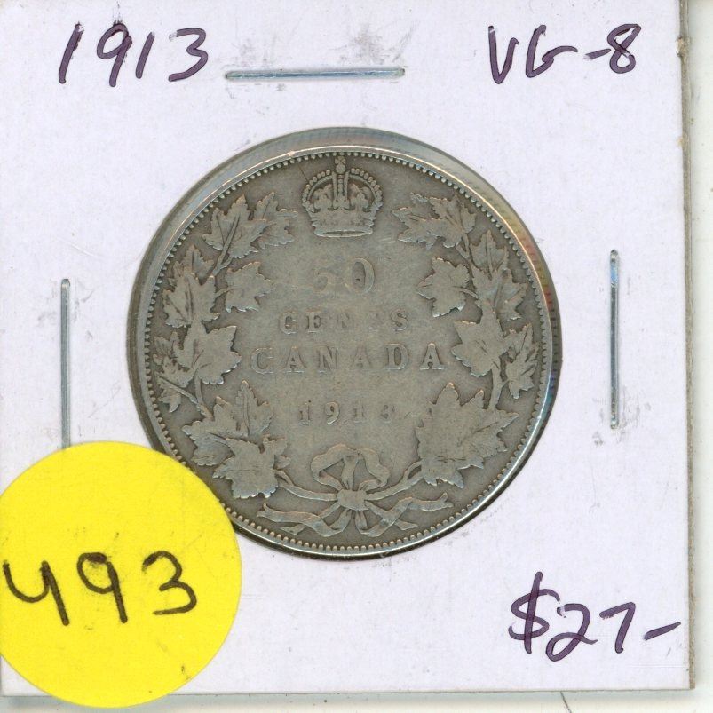 1913 Silver 50 Cents. The last 50 Cents issued before World War I. VG-8.