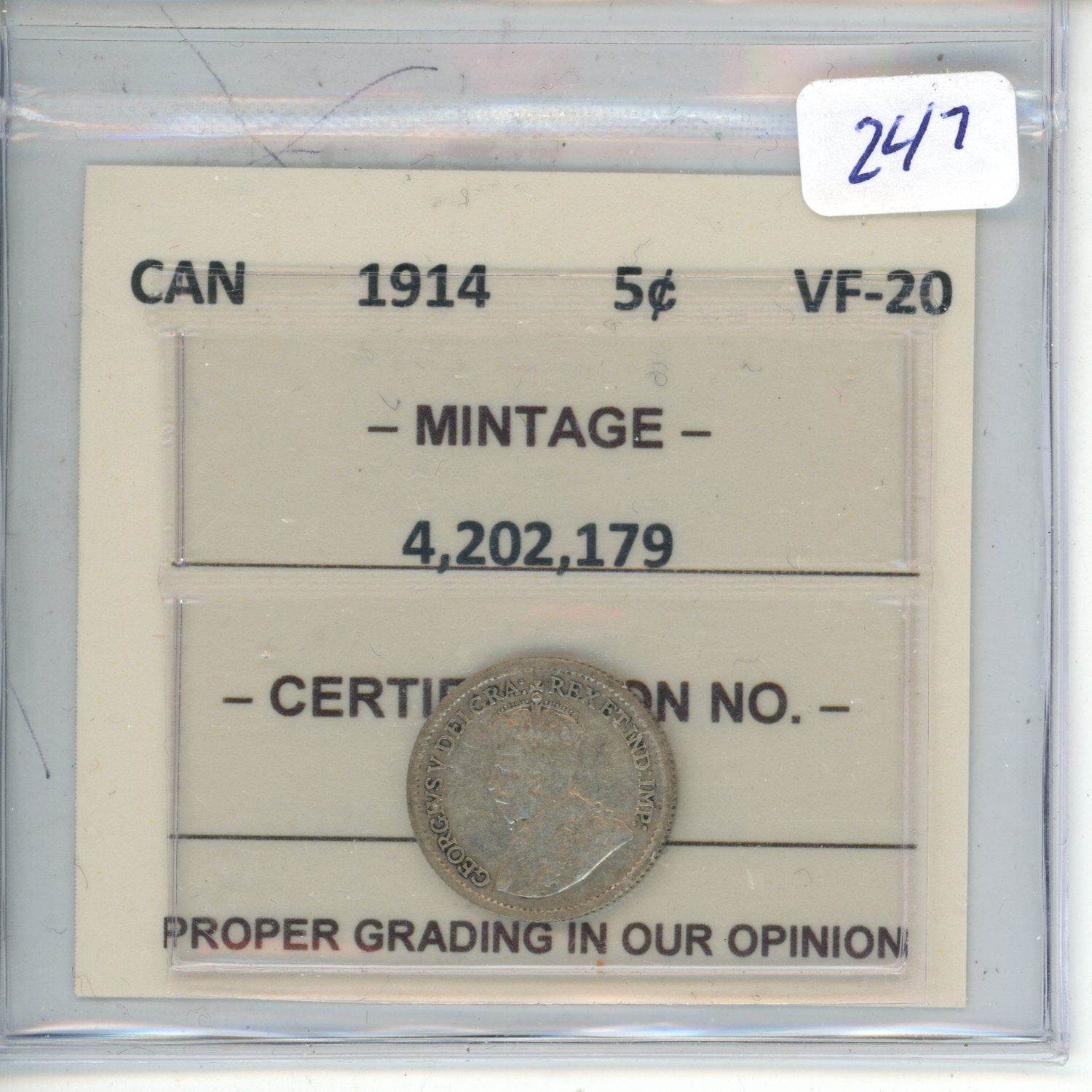1914 Canadian Silver 5 Cents, CCGG certified & graded VF-20.