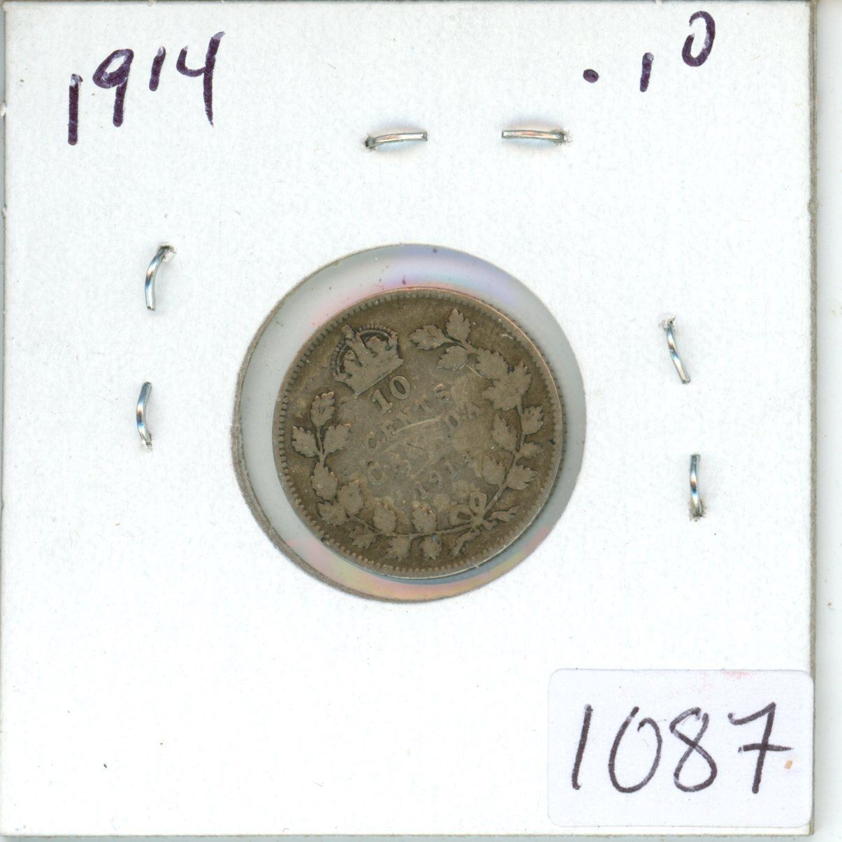 1914 Canadian silver 10 cent coin