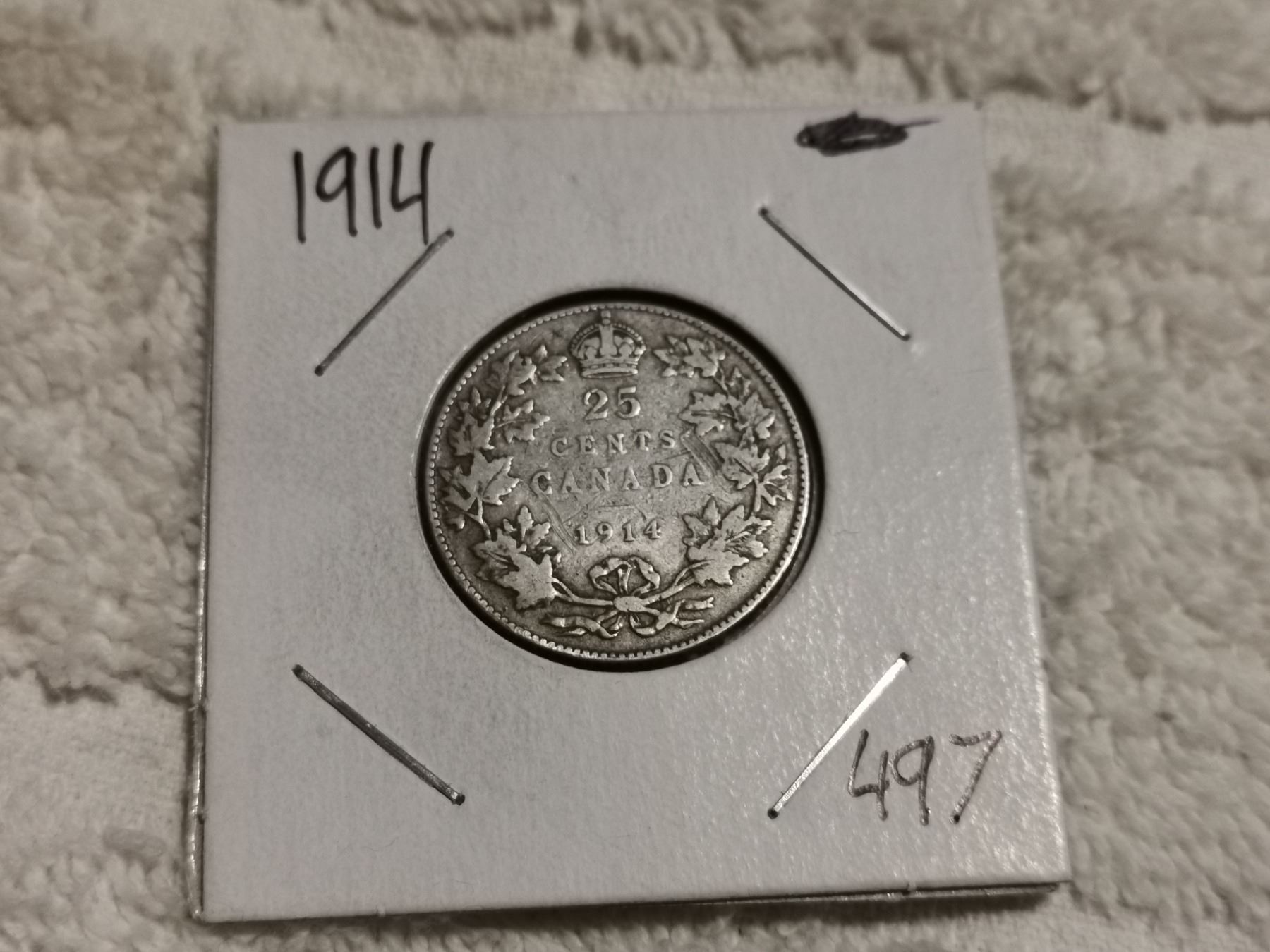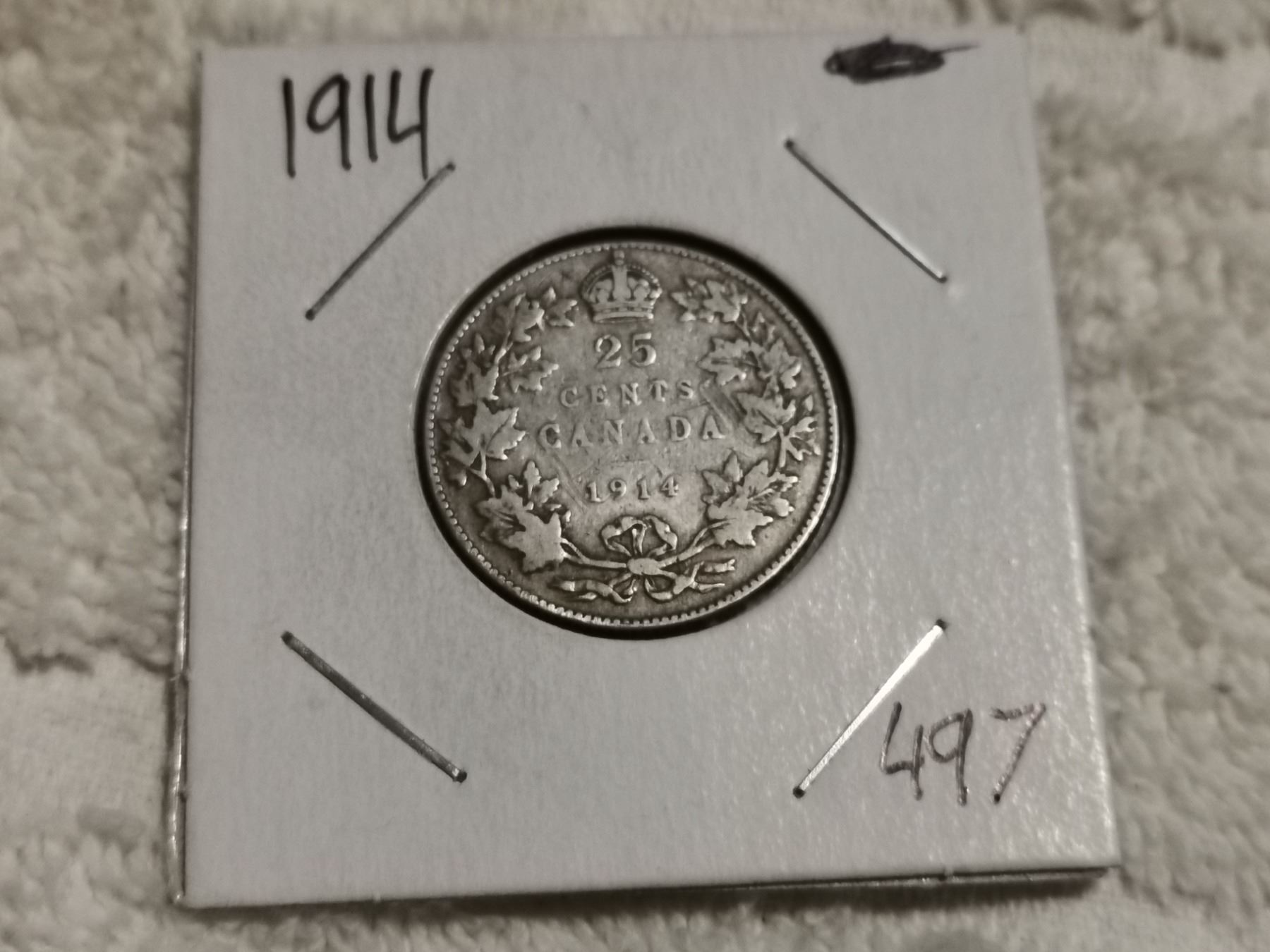1914 SILVER 25 CENT COIN, VG