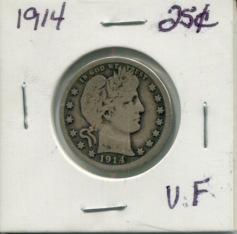 1914 USA "BARBER" 25 CENT PC (LAUREATE HEAD RIGHT)