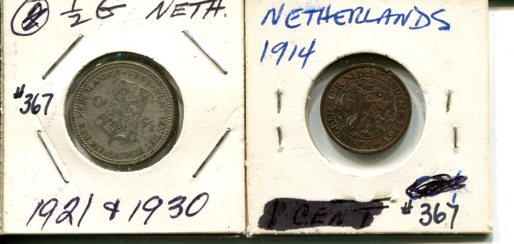 1914 one cent Netherlands + 1921 + 1930 1/2 G Netherlands