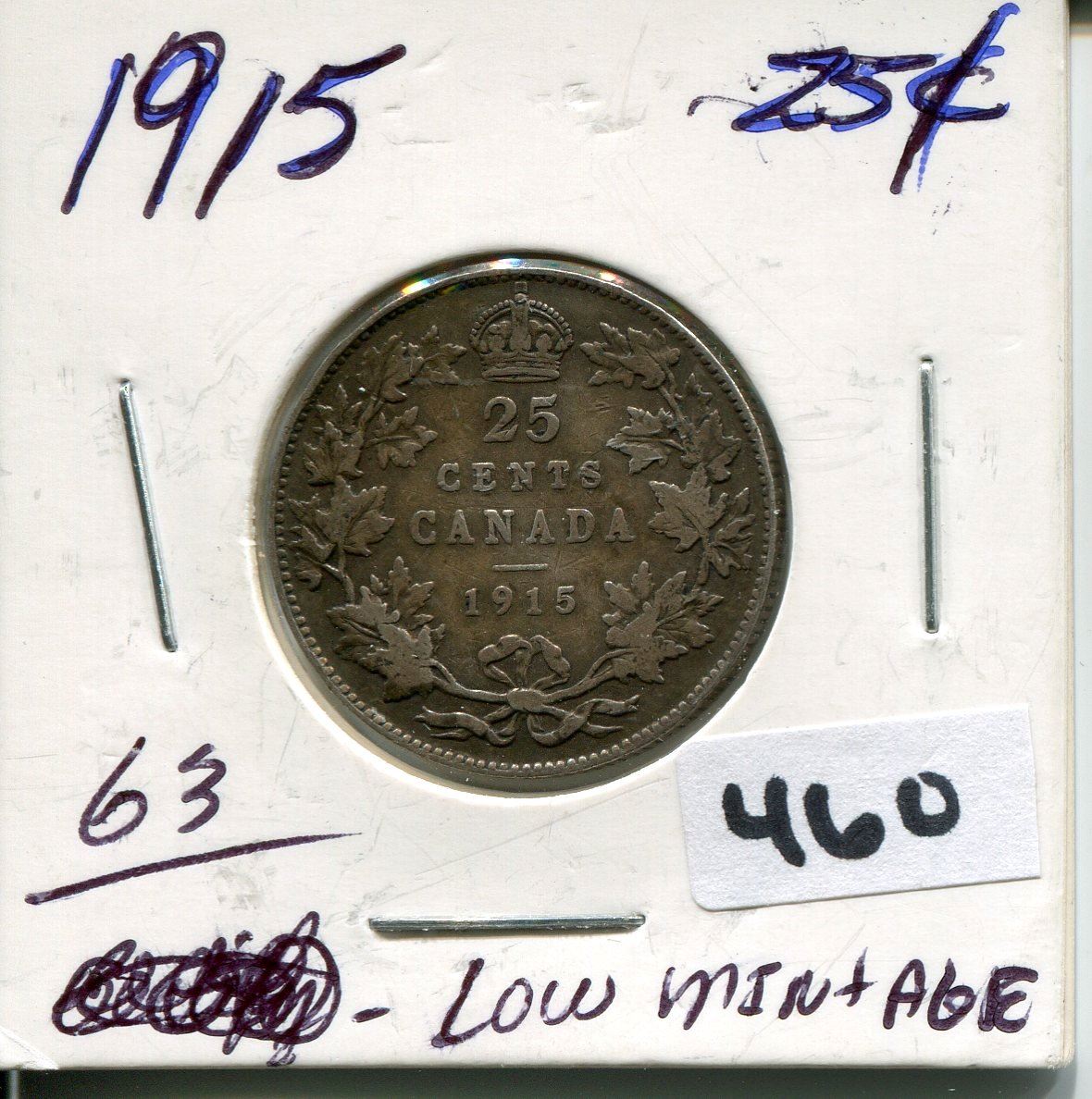 1915 CNDN SILVER QUARTER, LOW MINTAGE