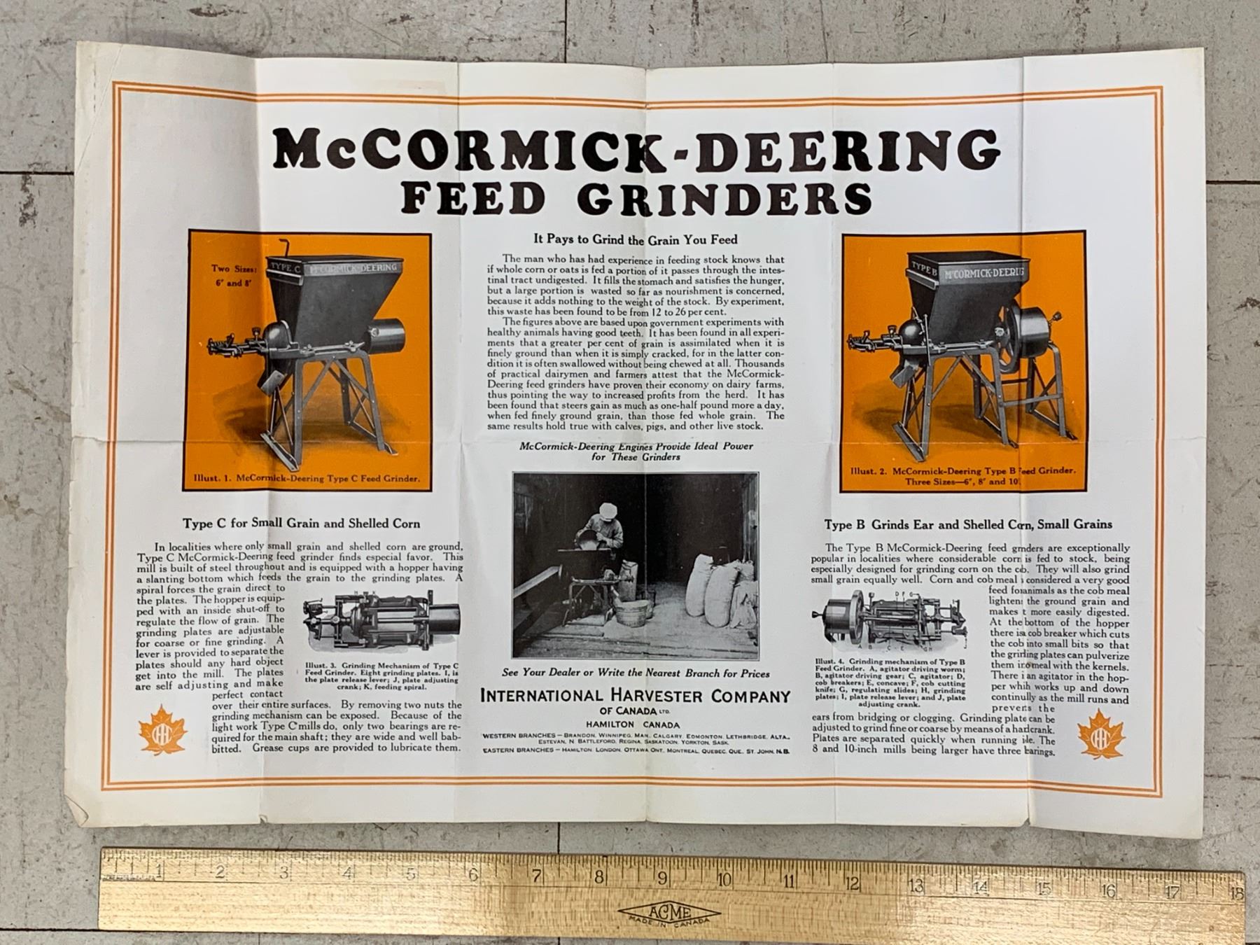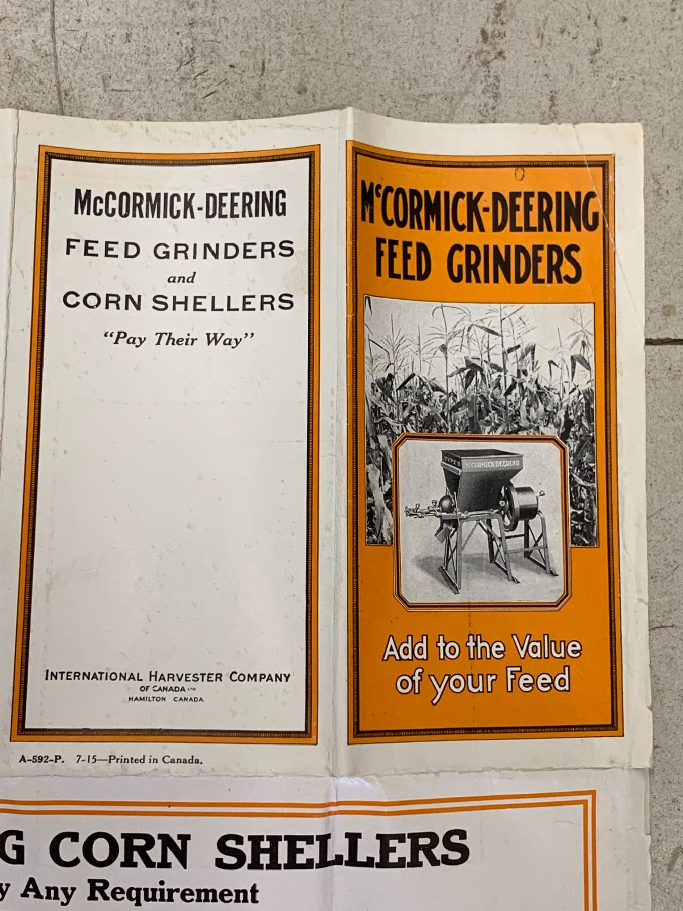 1915 IHC INTERNATIONAL HARVESTER FOLD OUT MCCORMICK DEERING GRINDERS ADVERTISING BROCHURE