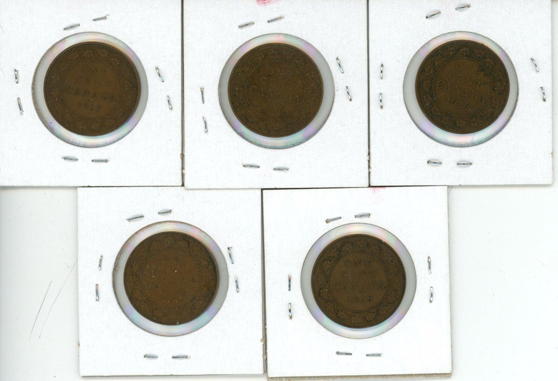 1916,1917,198,1919,1920 Large Canada Pennies
