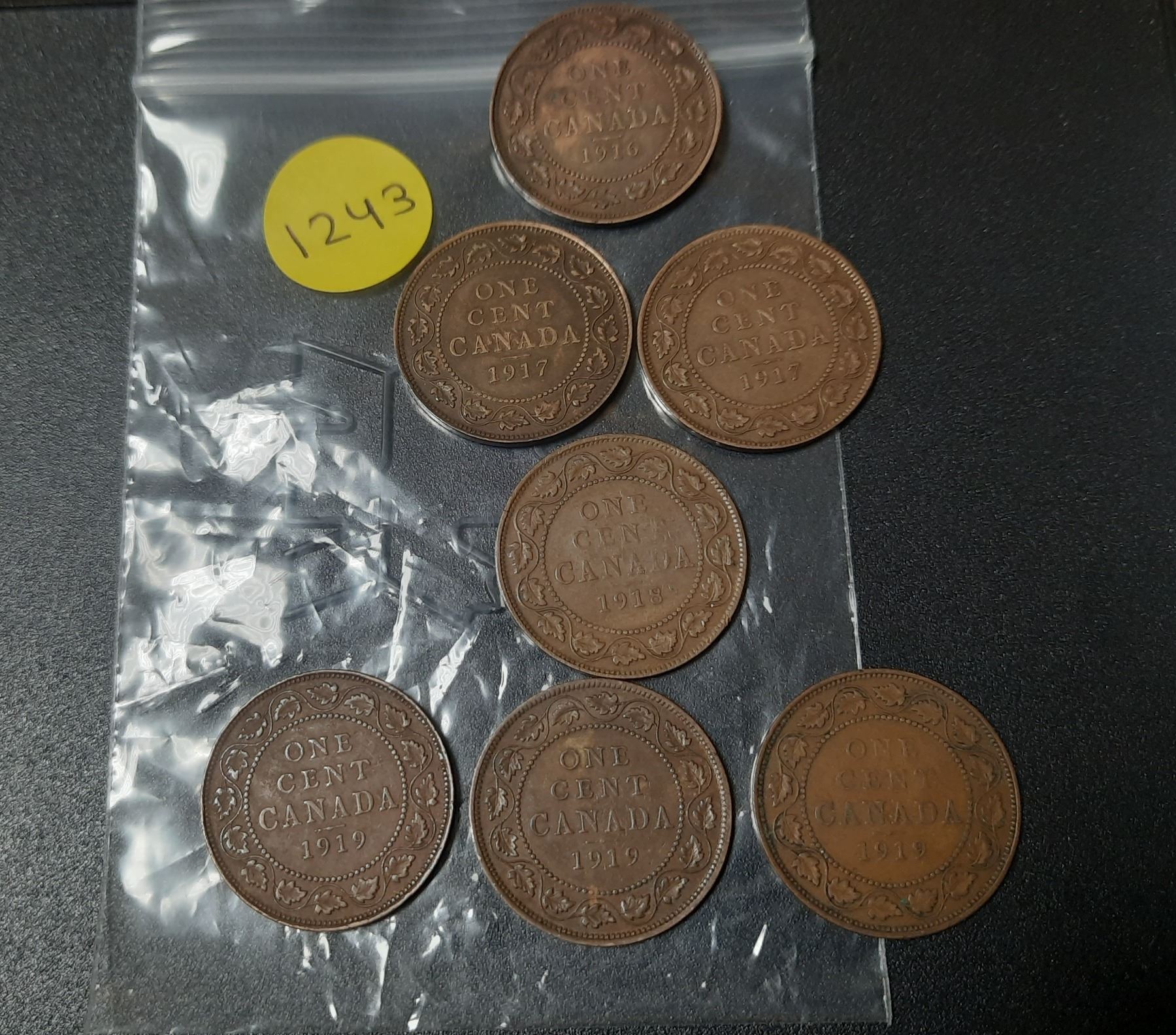 1916, (2) 1917, 1918, (3) 1919 Canada Large One Cent.