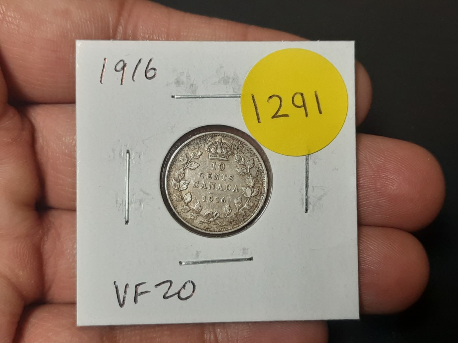 1916 Canadian Silver 10 Cents. VF20.