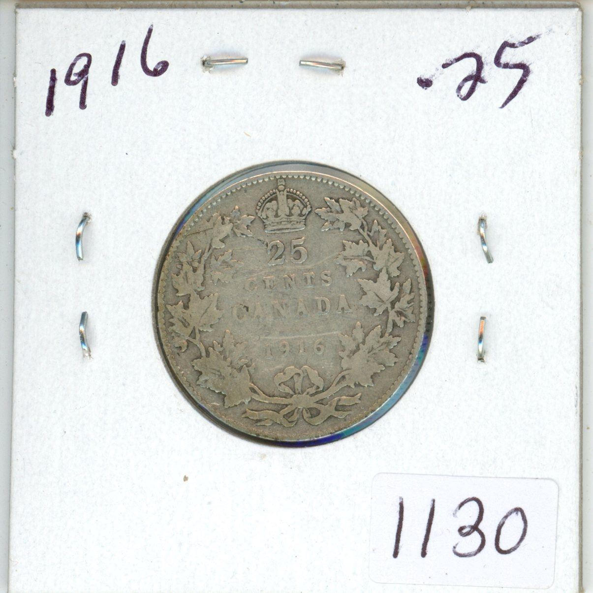 1916 Canadian silver 25 cent coin