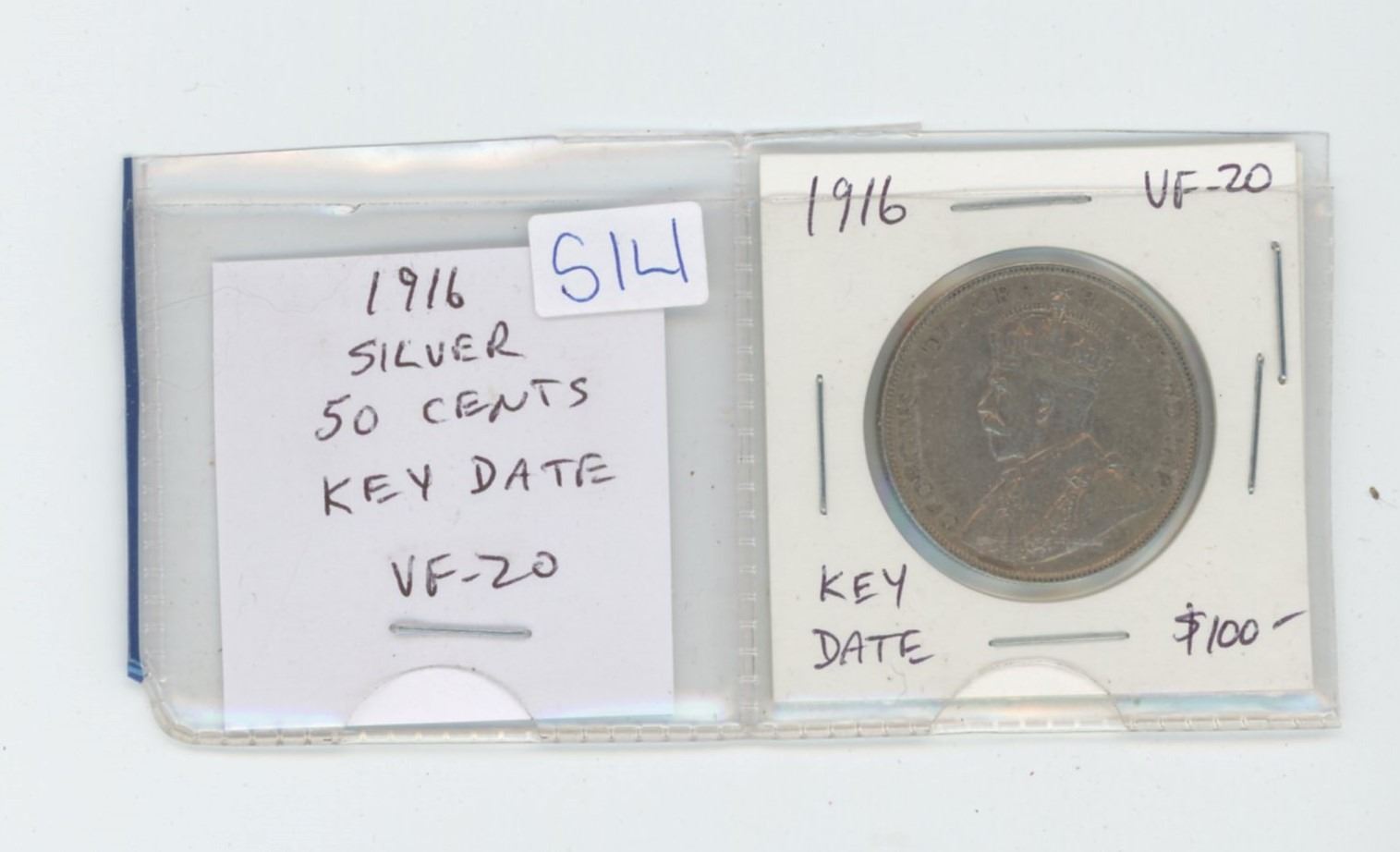 1916 silver 50 cents. VF-20. Key Date. Nice.